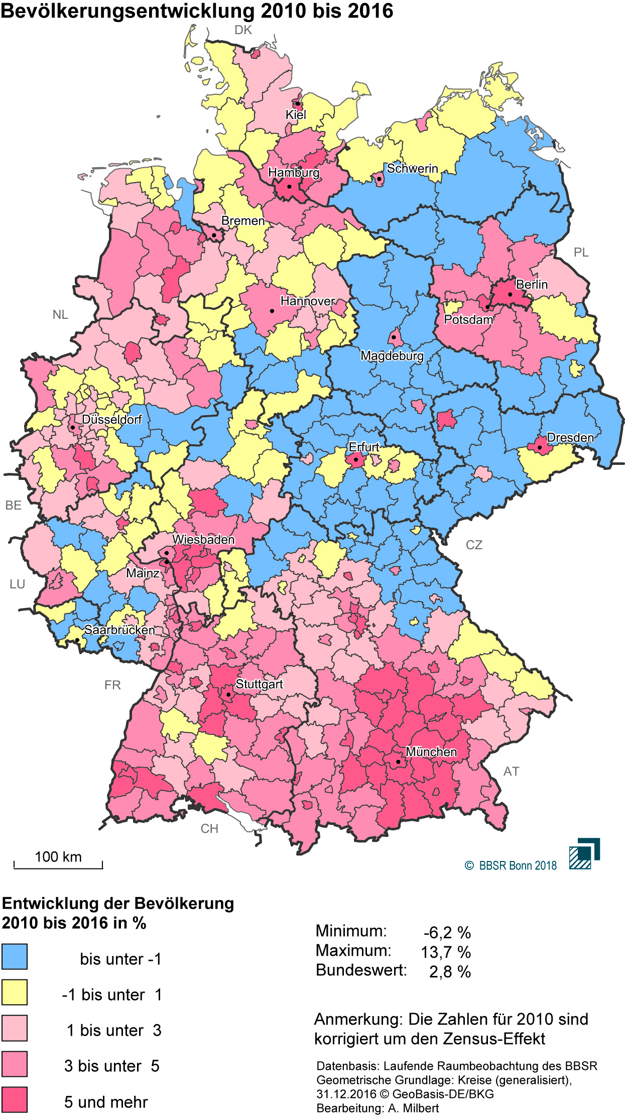 • Karte: Bevölkerungsentwicklung 2010-2016