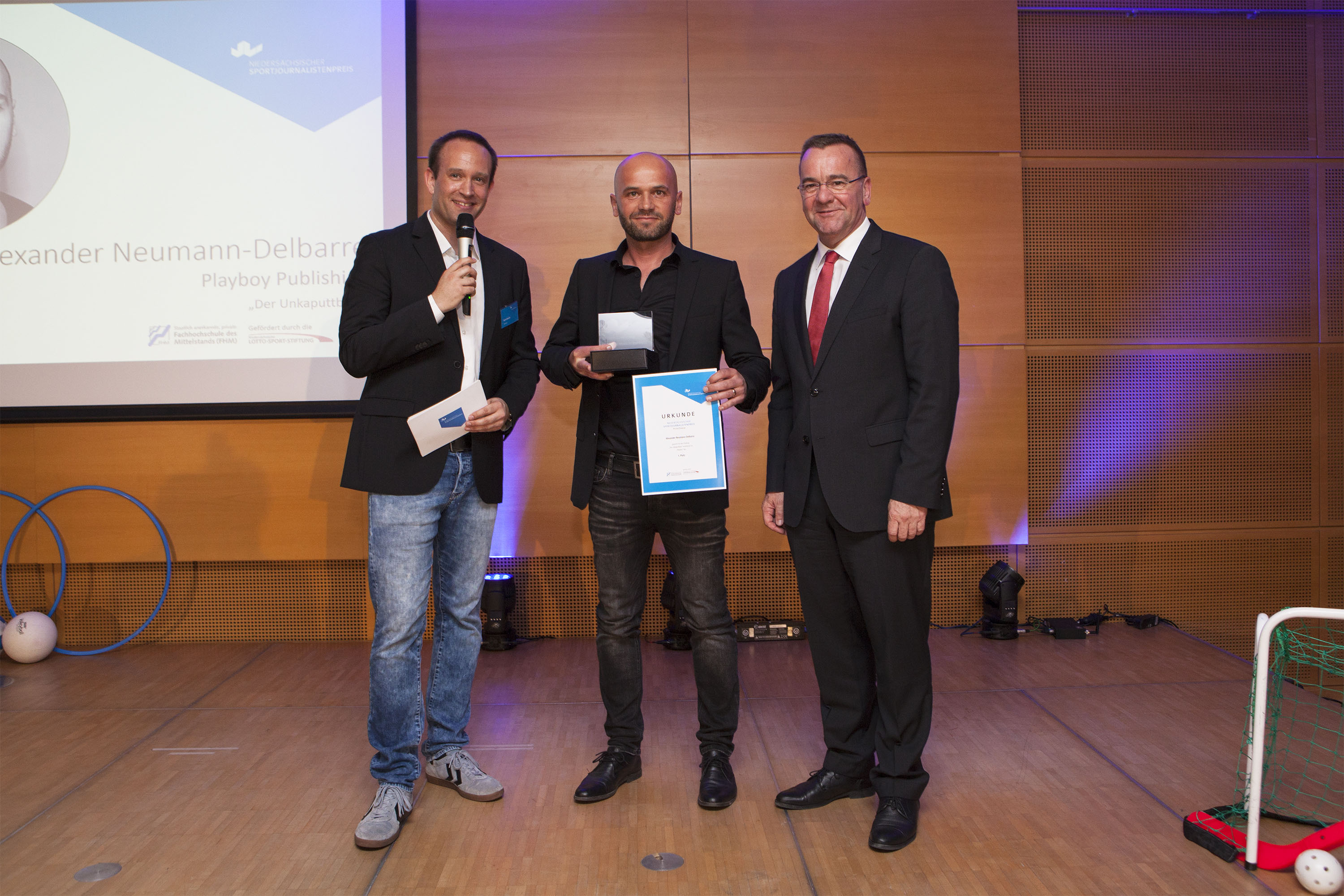 Alexander Neumann-Delbarre von Playboy Publishing hat mit seiner packenden Reportage über den „unkaputtbaren“ Boxer Suleyman Dag den Niedersächsischen Sportjournalistenpreis 2017 gewonnen. Dieser wurde bereits zum fünften Mal von der Fachhochschule des Mittelstands (FHM) vergeben. In der Kategorie TV/Hörfunk setzte sich Boris Poscharsky vom Norddeutschen Rundfunk mit einem Rugby-Beitrag über das Stadtduell Germania List gegen Hannover 78 durch. In der neu geschaffenen Kategorie „Digital“ überzeugte die Mediengruppe Kreiszeitung (Syke) mit ihrem crossmedialen Projekt DeichStube. Die Preisträger nahmen ihre Ehrung aus den Händen des Ministers für Inneres und Sport, Boris Pistorius, entgegen.