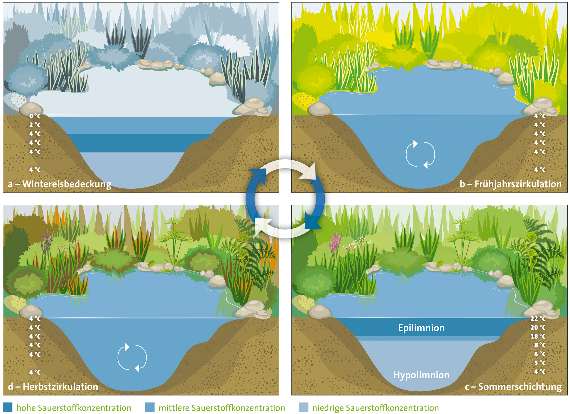 Die ersten warmen Frühlingstage kurbeln das Ökosystem See an. Das Leben unter der Wasseroberfläche erwacht. Durch mehr Licht und Wärme gedeihen Algen und Pflanzen. Diese wiederum dienen tierischen Wasserbewohnern – vom Zooplankton bis zum Fisch – als Nahrungs- und Lebensgrundlage. Doch was passiert, wenn das System „überhitzt“ und der jährliche Kreislauf langfristig aus dem Gleichgewicht gerät?