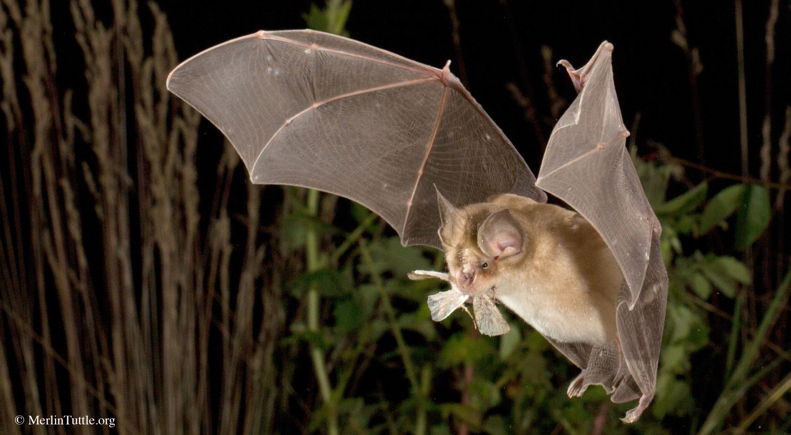 Fledermäuse sind bei der nächtlichen Jagd auf ihre Echoortung angewiesen. Sie nutzen sie zur Orientierung im Raum und oft auch zur Beutesuche. So auch die Große Hufeisennase, die spezialisiert ist auf die Jagd von fliegenden Insekten in dichter Vegetation. Sie stößt dazu ununterbrochen Echoortungslaute aus, die aus einem langen Ruf einer bestimmten Frequenz bestehen. Trifft der Laut auf ein flatterndes Insekt, bekommt das lange Echo durch die Auf- und Abbewegungen der schlagenden Flügel rhythmische Muster, anhand derer die Fledermaus ihre Beute wahrnehmen können.
