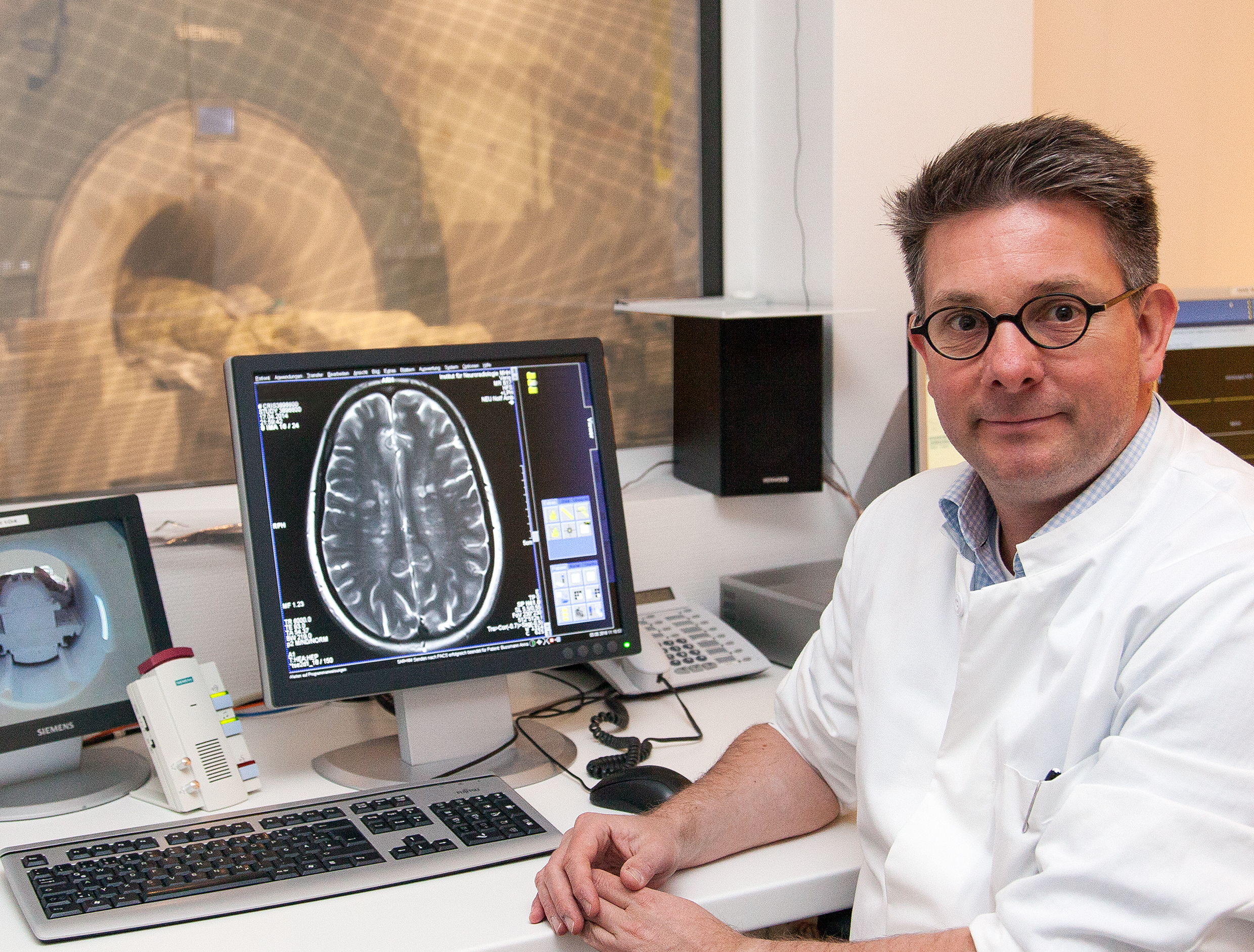 PD Dr. Wattjes wertet nicht nur für die MHH, sondern auch für Patienten aus ganz Deutschland und aus dem Ausland MRT-Aufnahmen aus. Dafür ist eine spezielle neuroradiologische Expertise Voraussetzung, welche nur an wenigen Standorten auf der Welt verfügbar ist. Er wirkt für die MHH an einem Pilotprojekt mit, in dem es darum geht, die MHH als Referenzzentrum für eine neue internationale digitale Plattform zu etablieren. Auf dieser können von überall auf der Welt MRT-Aufnahmen anonymisiert hochgeladen werden, um für eine Zweitbegutachtung zur Verfügung zu stehen.
