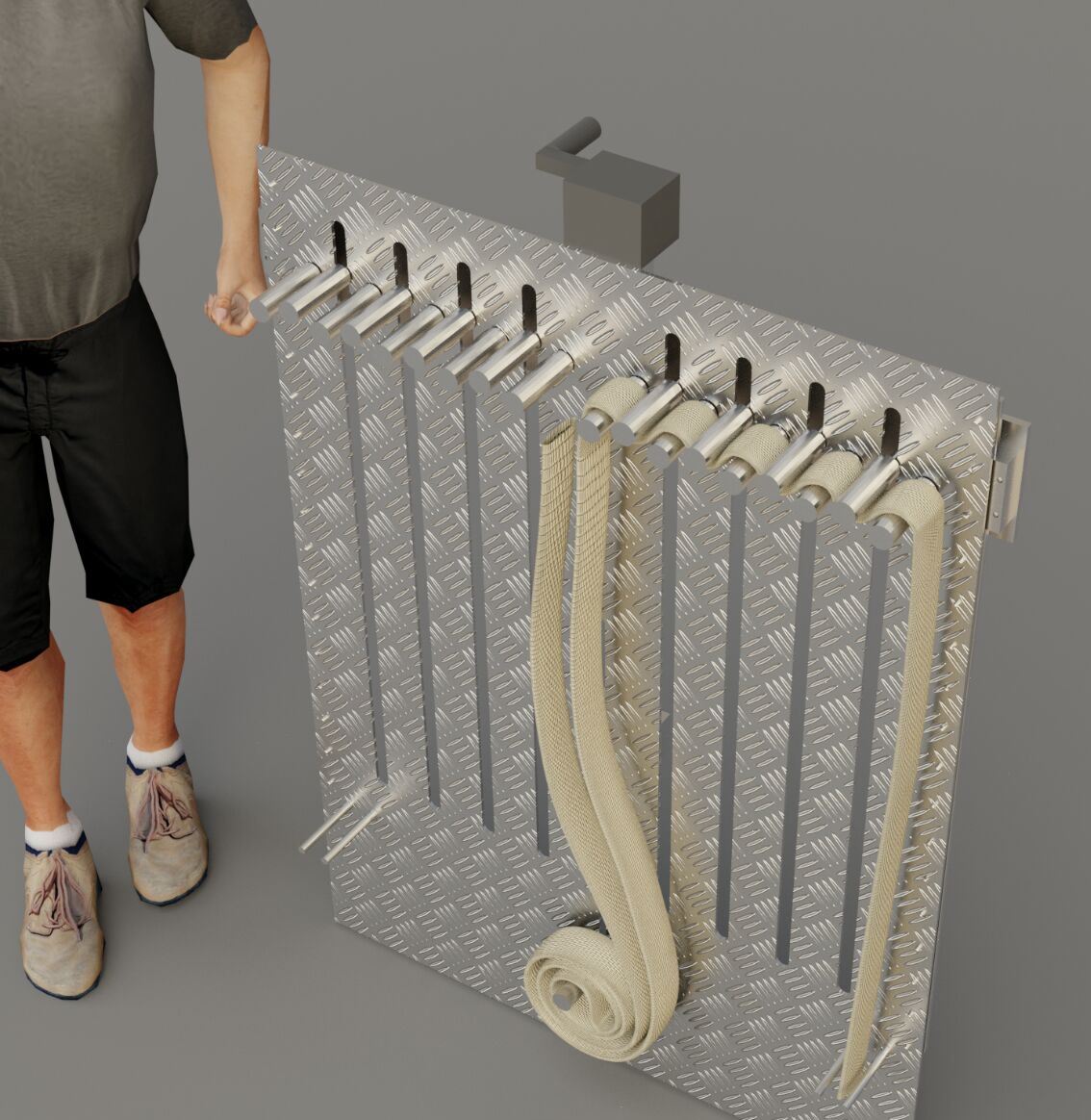 Und so erfanden er sowie fünf Kommilitonen und zwei Kommilitoninnen einen „Fire-Rewinder“. Dieser besteht aus einer Grundplatte und einem Kamm. Die Kupplungsenden des Schlauchs werden seitlich an der Grundplatte fixiert. Der Kamm wird mechanisch nach unten gezogen und der Schlauch in Buchten gewunden. Danach wird er aus dem „Fire-Rewinder“ entnommen und in den Tragekorb gelegt: „Durch unsere Erfindung lässt sich die einst lästige Aufgabe deutlich beschleunigen. Zudem führt die veränderte Arbeitshöhe zu einer ergonomischen Entlastung. Jetzt macht das Schlauchaufwickeln sogar Spaß.“, freut sich Robin.