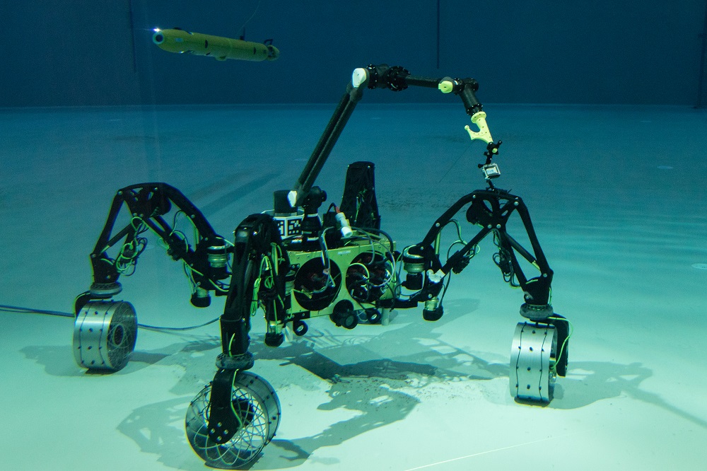 Zu den Highlights des Tages gehört der vierbeinige, affenähnliche Laufroboter „Charlie“, der als Teil eines Roboterschwarmes den Valles Marineris auf dem Mars, das größte Grabenbruchsystem unseres Sonnensystems, erkunden soll. Außerdem können die Besucherinnen und Besucher durch das Schaufenster zum großen Salzwasserbecken der Maritimen Explorationshalle beobachten, wie ein Team zweier heterogener Unterwasserroboter – ein schwimmendes sowie ein auf dem Grund fahrendes System – gemeinsam den „Meeresboden“ erkundet. Eine weitere Attraktion, welche die DFKI-Forscherinnen und Forscher am Tag der offenen Tür präsentieren, ist das im Projekt „Recupera REHA“ entwickelte innovative und mobile Ganzkörper-Exoskelett sowie ein darauf basierendes Teilsystem, welches zukünftig zur rehabilitativen Therapie nach einem Schlaganfall zum Einsatz kommen soll. Darüber hinaus demonstriert ein Nao-Roboter des amtierenden Weltmeisters im RoboCup „B-Human“ – das Erfolgsteam von Universität Bremen und DFKI – sein fußballerisches Können. Am Beispiel des Projektes „smile“, das Mädchen und junge Frauen für Informatik begeistern möchte, stellt der Bremer Standort seine Aktivitäten im Bereich der Nachwuchsförderung vor.