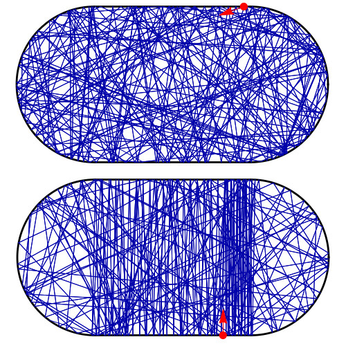 Stellen Sie sich einen Ball vor, der in einem ovalen Stadion herumspringt. Er wird chaotisch durch den verfügbaren Raum springen, und da seine Bewegung zufällig ist, wird er früher oder später jeden Ort im Stadion besucht haben. In all dem Chaos kann jedoch Ordnung herrschen: Trifft der Ball zufällig an der richtigen Stelle und im richtigen Einfallswinkel auf die Wand, kann er in einer periodischen Umlaufbahn landen. Auf ihr besucht er immer wieder dieselben Stellen und lässt die anderen aus. Solch eine periodische Bahn ist extrem instabil, da bereits die geringste Störung ausreichen kann, um den Ball von seiner Bahn abzulenken und ins Chaos zurückzuschicken.