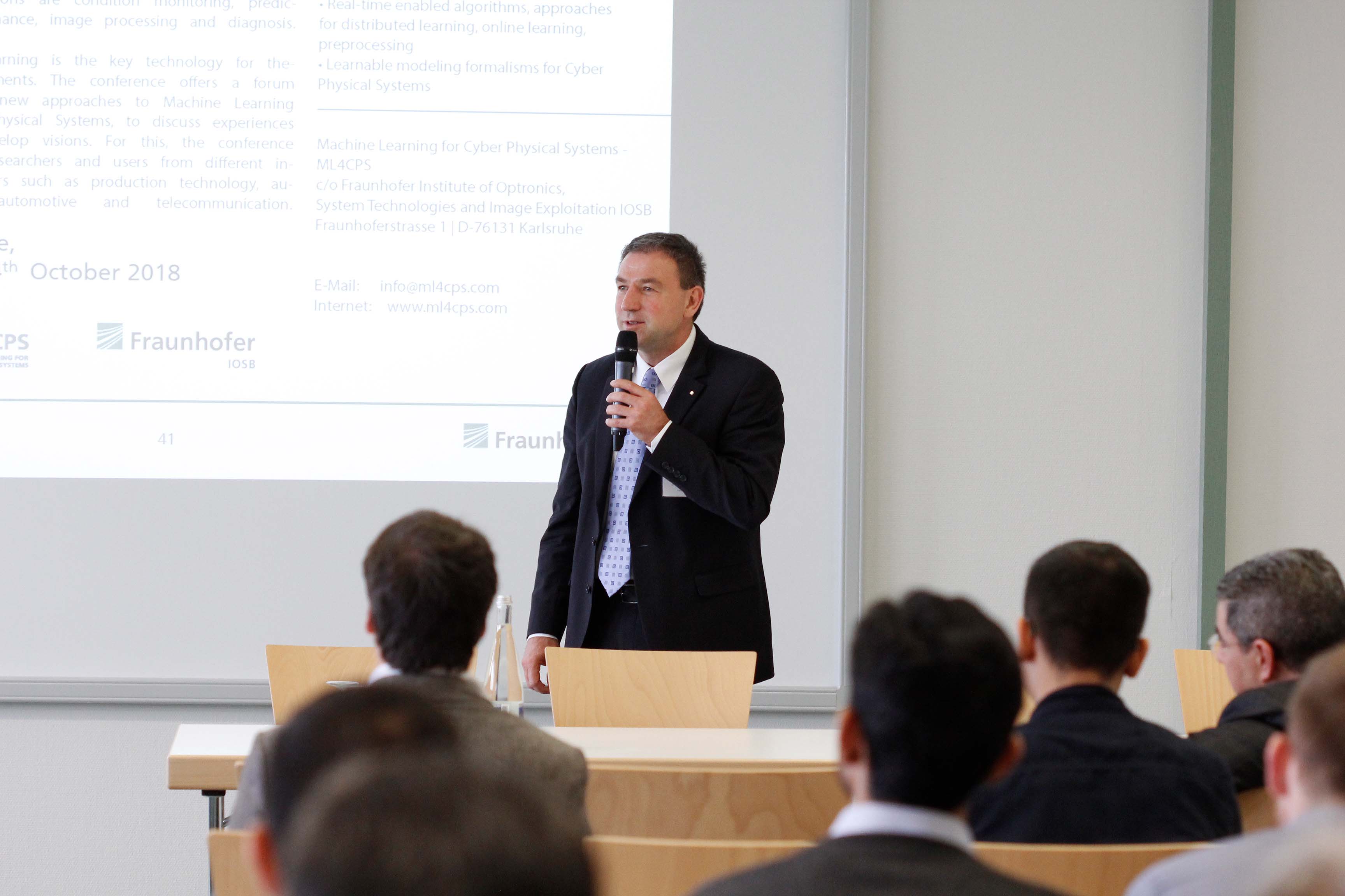 An der Konferenz nahmen Vertreter aus der Wissenschaft, Wirtschaft, Beratungsunternehmen und der Industrie- und Handelskammer Karlsruhe teil. In seiner Keynote-Ansprache vor den rund 60 Konferenzteilnehmern erörterte Professor Dr.-Ing. habil. Jürgen Beyerer, Institutsleiter des Fraunhofer IOSB, den Begriff Industrie 4.0. Diese durch die Digitalisierung getriebene, vierte industrielle Revolution ist dem Informatik-Professor zufolge dadurch charakterisiert, dass man die Wertschöpfung zu optimieren versucht, indem man alle verfügbaren Daten und Informationen effizient und möglichst umfassend auswertet. Das bringt viele wissenschaftliche Fragestellungen und technologische Herausforderungen mit sich: Die Daten müssen durch Sensoren gewonnen, sicher übertragen und automatisiert ausgewertet werden, Stichwort Künstliche Intelligenz. In Echtzeit sollen sich sodann Anpassungen und Optimierungen der Produktionsanlagen ableiten lassen, um letztlich Kosten zu senken und die Produktivität zu steigern.