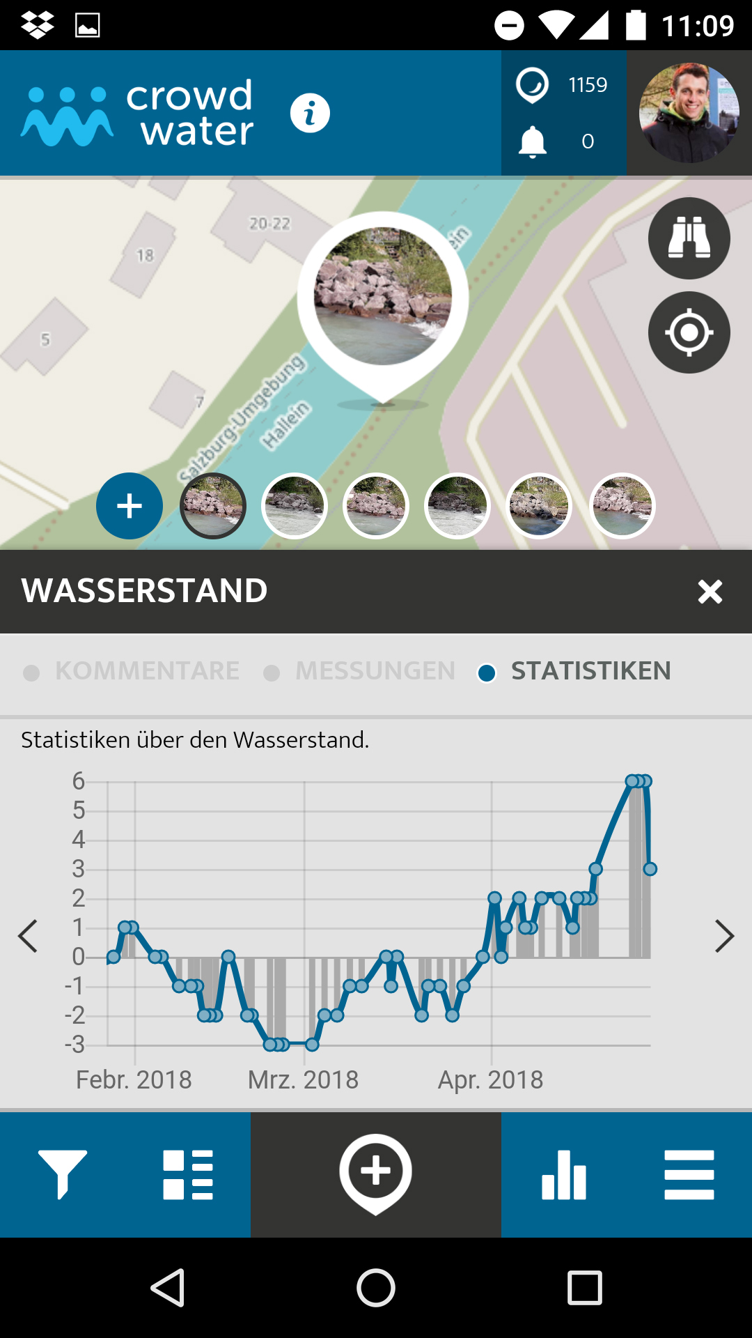 Beobachtungen und langen Zeitreihen. «Wenn an einem Flussabschnitt also bereits eine «CrowdWater»-Station existiert, ist es sinnvoller, hier weitere Beobachtungen hinzuzufügen als neue Stationen einzurichten», ergänzt Seibert. Neben Wasserstandsdaten an Flüssen ermöglicht die App auch, Beobachtungen zur Bodenfeuchte und an kleinen Bächen, die nur zeitweise Wasser führen, durchzuführen.