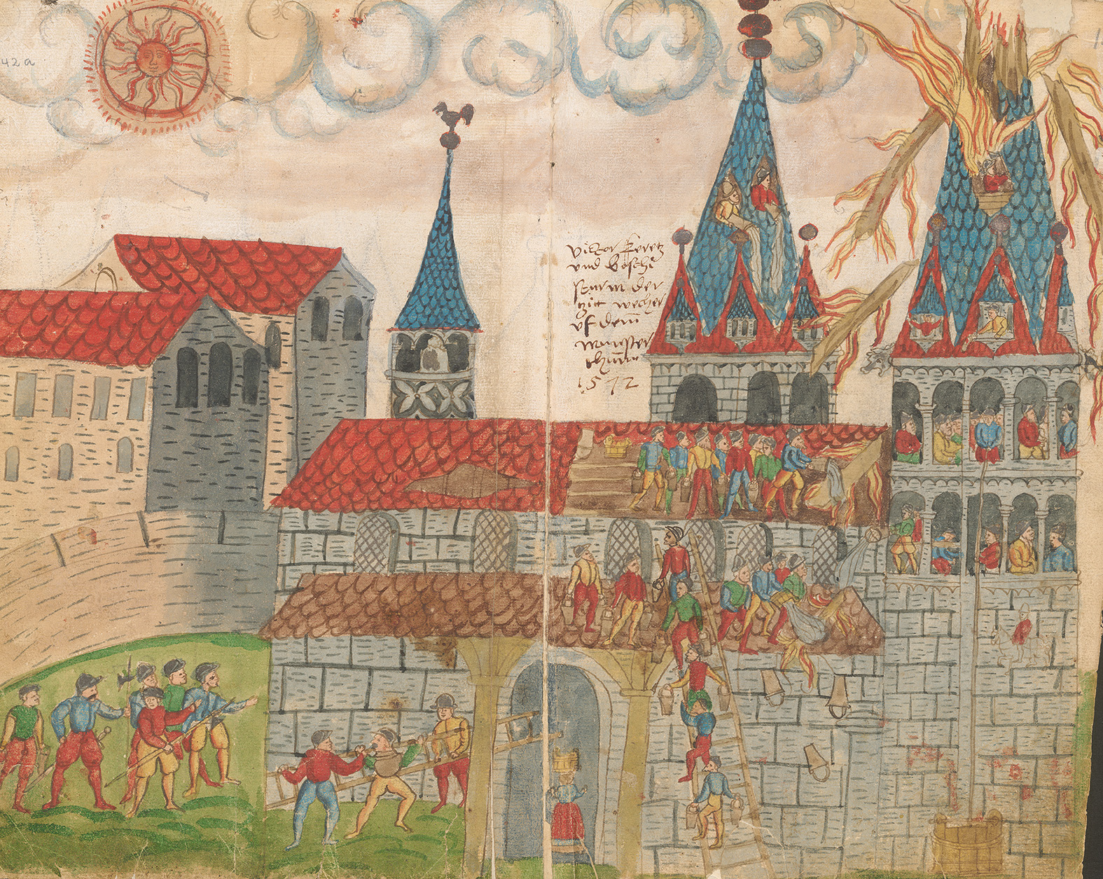 Am 7. Mai 1572 entlädt sich - nach Jahren extremer Wetterlagen und Ernteausfällen - auch noch der Himmel über Zürich und ein Blitz schlägt ins Grossmünster ein, das Epizentrum der Zürcher Reformation. Was heute als Naturphänomen verstanden wird, war in Zeiten konfessioneller Richtungskämpfe als Zeichen Gottes interpretiert worden. Erste Gerüchte machten die Runde, die im Blitzschlag einen göttlichen Fingerzeig gegen die Zürcher Kirchenoberen sahen. Heinrich Bulliger, Zwinglis Nachfolger als Reformator, erkannte die Gefahr von Fehlinterpretationen und verschickte Briefe, in denen er das Ereignis relativierte. Seine sachlichen Schilderungen schrieb er auf ein separates Blatt, das von Hand kopiert und weitergereicht werden konnte. So griff Bul-linger möglichen Falschmeldungen vor und wahrte die Deutungshoheit über den "göttlichen" Blitzschlag.