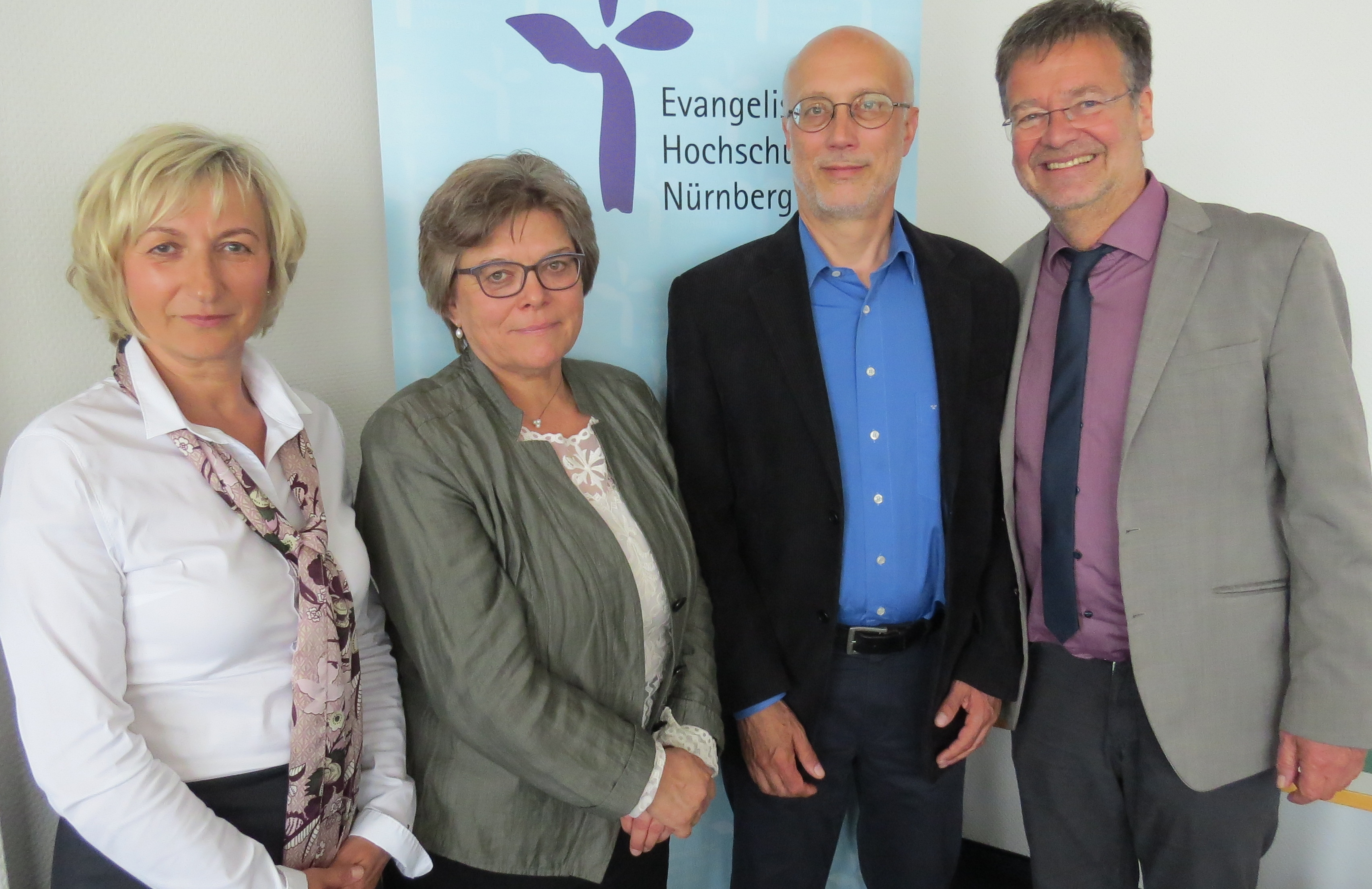 Das Kuratorium der Evangelischen Hochschule Nürnberg (EVHN) hat die Mitglieder des neuen Präsidiums gewählt und folgt damit dem Vorschlag der Versammlung der EVHN: Am 17. Mai 2018 wurde Präsidentin Prof. PD Dr. Barbara Städtler-Mach für weitere vier Jahre im Amt bestätigt, ebenso Vizepräsident Prof. Dr. Joachim König. Neu gewählt wurde Prof. Dr. Helene Ignatzi zur Vizepräsidentin. Sie folgt auf Vizepräsident Prof. Dr. Michael Kuch, der nicht mehr zur Wahl angetreten ist. Kanzler ist wie bisher Kurt Füglein. Die Amtszeit des vierköpfigen neuen Präsidiums beginnt mit dem Wintersemester 2018/19 am 1. Oktober 2018 und dauert vier Jahre.