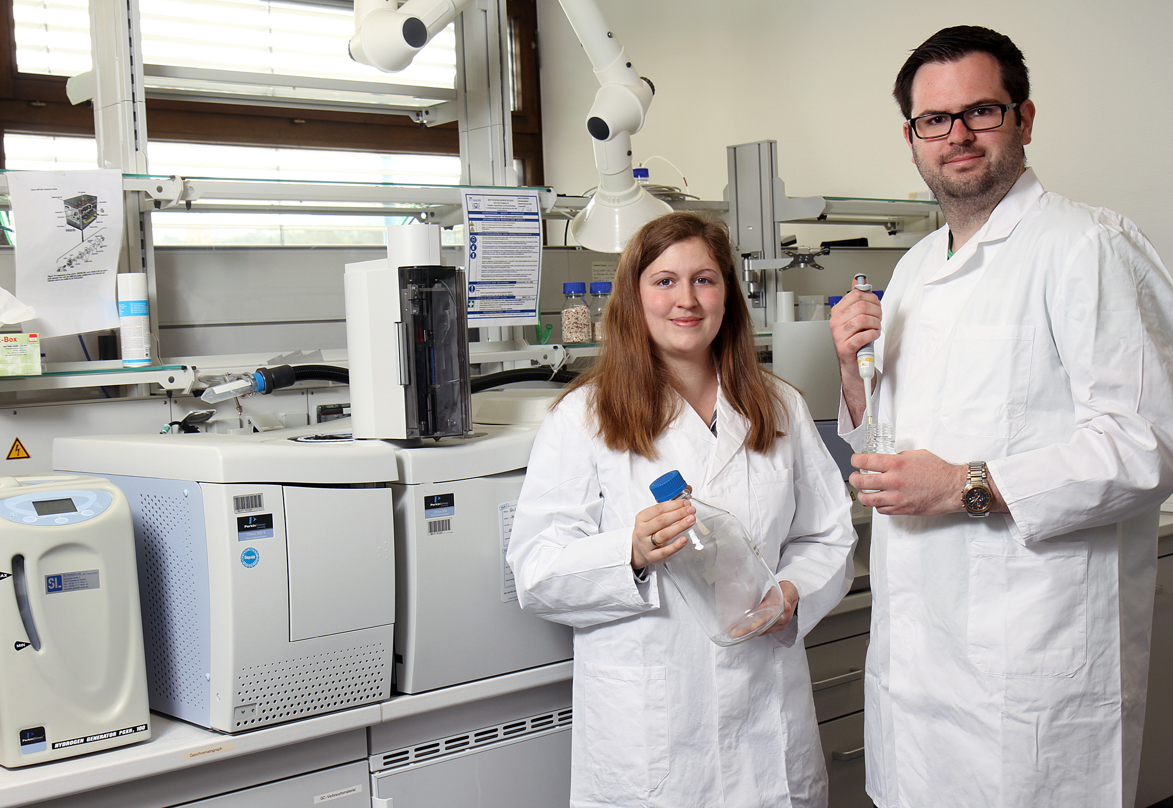 In the field of inorganic chemistry, the research team around Professor Dr. Werner Thiel with the PhD students Ranja Saynisch and Pascal Weingart is working with fats, which are present in the brewers’ spent grain in high amounts. "They contain numerous unsaturated fatty acids, which yeasts does not need for fermentation", says Thiel. The chemists intent to identify those substances in more detail. In a next step, they want to prepare products for the industry. "It's possible to recover glycerin from fats, which then can be transformed to intermediary products for the chemical industry", the Professor continues. "It is possible, among other things, to gain precursors from unsaturated fatty acids for the plastics production. We are going to develop the required catalysts for this process."