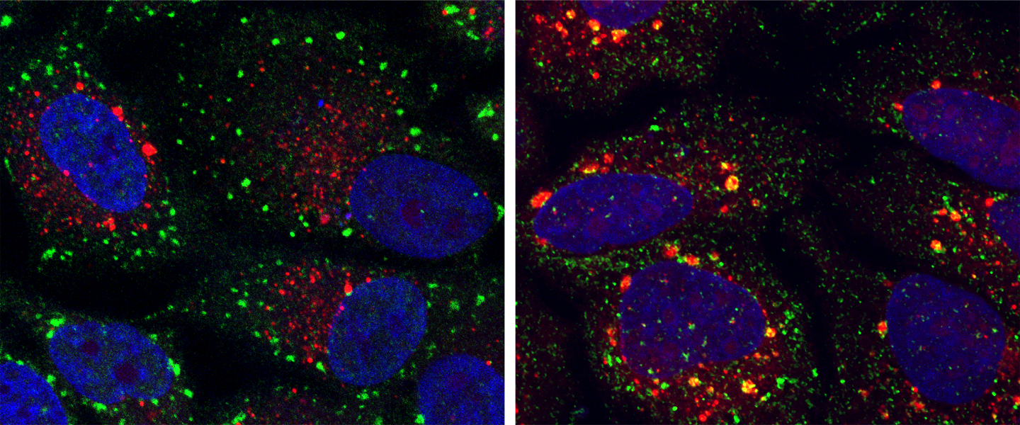 Stress granules are a visible sign of such stress reactions: The small granules consisting of numerous proteins and messenger RNAs build up inside the cell when protein production is suspended. Once the stress is over, the cell takes up its regular operation again and eliminates the stress granules. But if this clearance process does not work according to plan, serious consequences can arise.