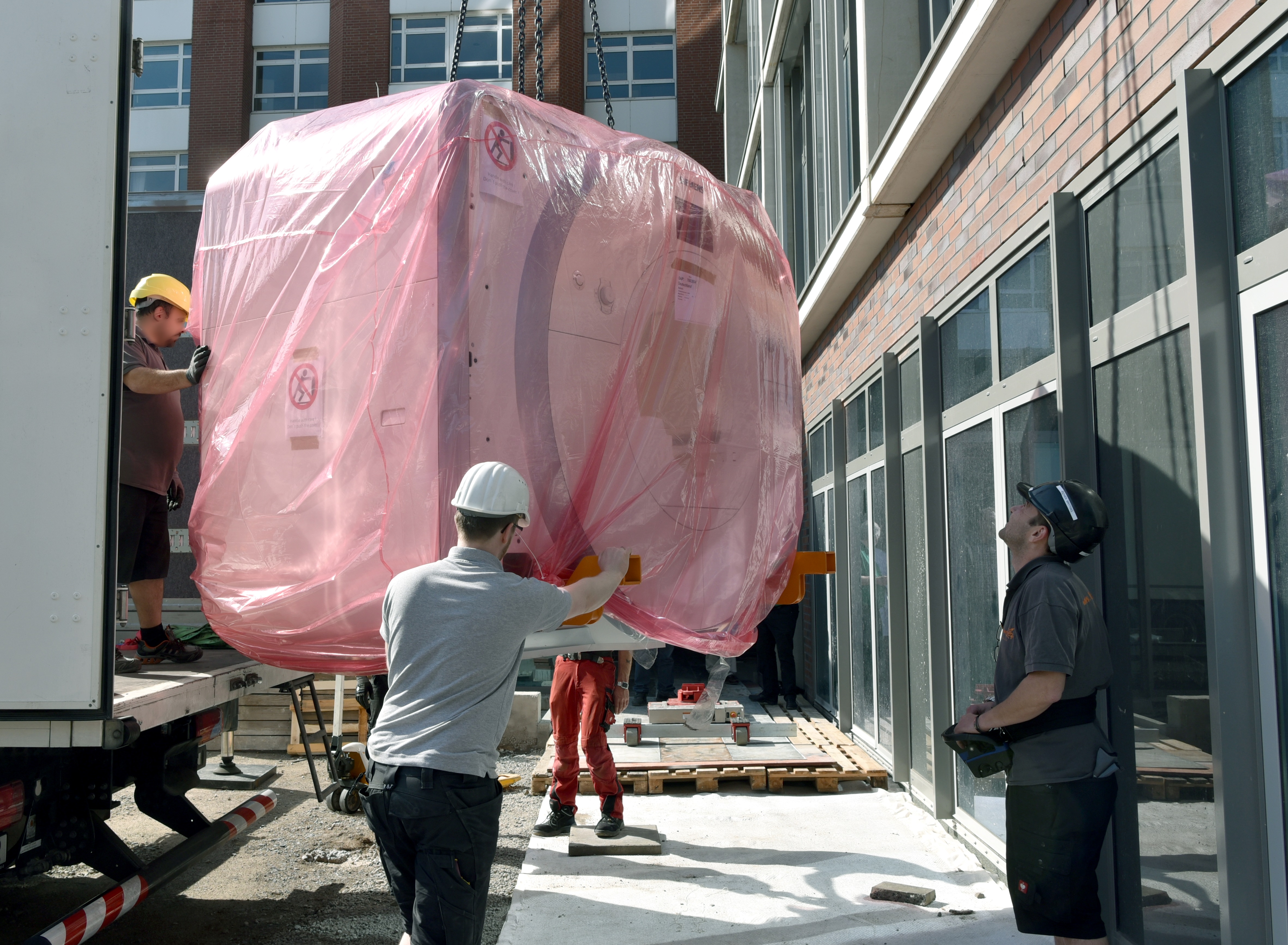 „Als BG Klinik und überregionales Traumazentrum brauchen wir eine leistungsstarke Radiologie, die unsere Fachabteilungen mit modernster bildgebender Diagnostik unterstützt“, sagt Ralf Wenzel, Geschäftsführer des Bergmannsheil. „Mit dem neuen Gerätepark sind wir jetzt für die Zukunft sehr gut aufgestellt.“ Die beiden MRT wurden kürzlich mit Spezialtransportern geliefert. Mit einem ferngesteuerten Transportsystem wurden die tonnenschweren Kolosse ins Klinikgebäude und zu ihrem Einsatzort im neuen Trakt der Radiologie befördert. Ein Expertenteam führte die aufwändigen Transporte durch, die pro Gerät mehrere Stunden in Anspruch nahmen. In den nächsten Wochen werden die Geräte eingerichtet, die Software angepasst und die Nutzer eingewiesen. Ab Juli 2018, wenn der neue Bauabschnitt in Betrieb geht, werden die ersten Patienten untersucht werden können.