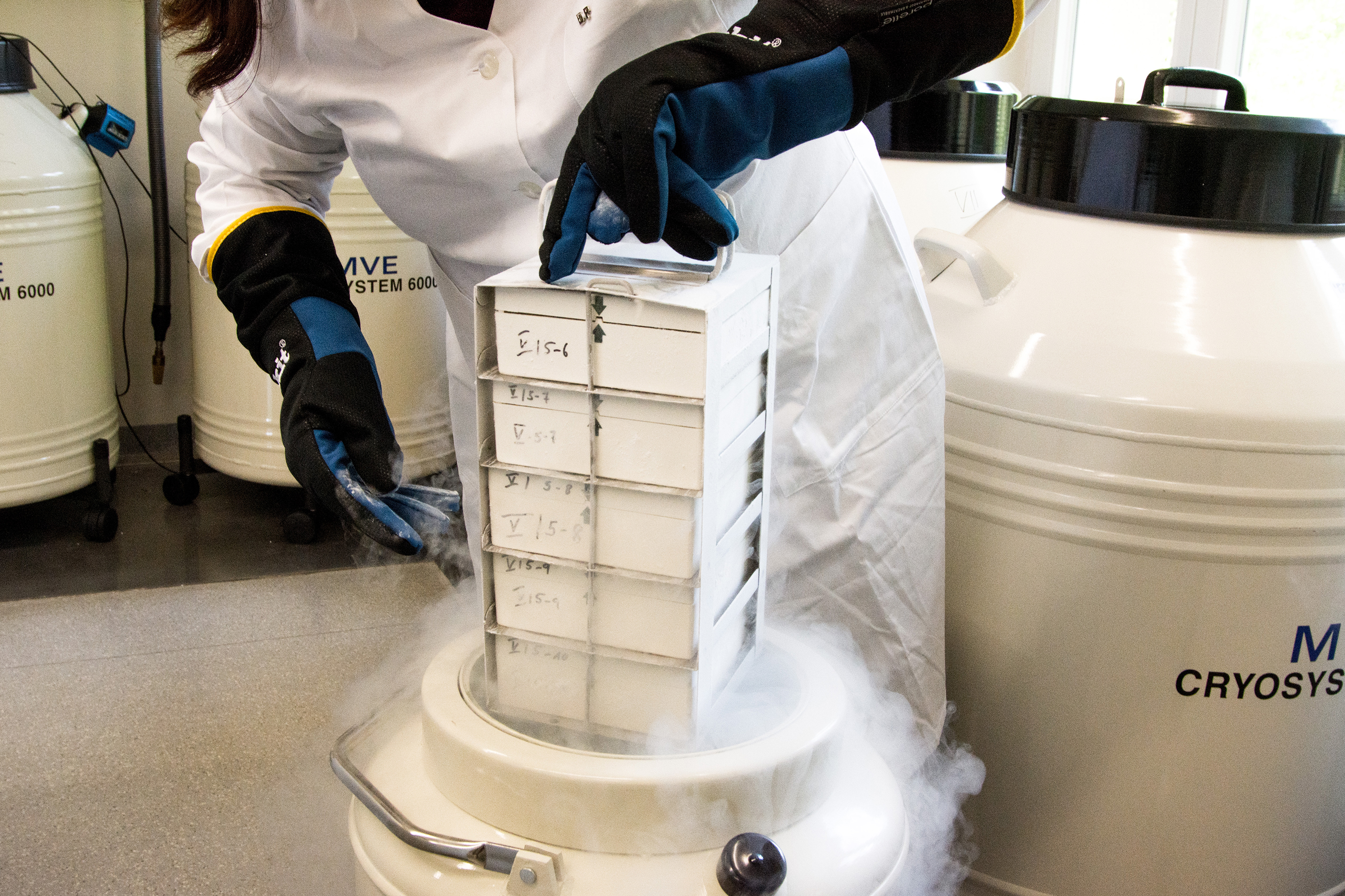 Seit 1996 wird am IPK an der Kryokonservierung geforscht. Bei dieser Methode werden entwicklungsfähige Pflanzenteile von 1-3 mm Größe bei -196 °C in flüssigem Stickstoff eingefroren. Alle biologischen Prozesse kommen dabei zum Erliegen und das Gewebe ist für einen unabsehbar langen Zeitraum lagerbar. Bei Bedarf kann es wieder dem kalten Umfeld entnommen und zur ganzen Pflanze herangezogen werden.