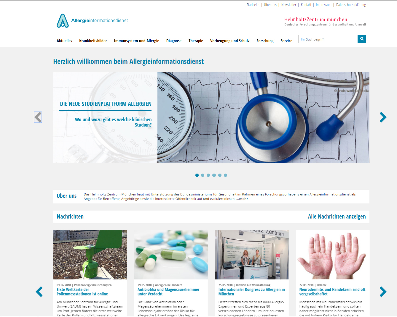 Das Helmholtz Zentrum München hat in den letzten fünf Jahren zu allen drei medizinischen Forschungsschwerpunkten eigene Informationsdienste und darin verankerte Studienplattformen entwickelt. Neben dem Allergieinformationsdienst stehen Angebote für Diabetes und Lungenerkrankungen zur Verfügung. Alle drei Dienste wurden mit dem Ziel aufgebaut, bundesweit Standards zu setzen für qualitätsgesicherte, evidenzbasierte und gleichzeitig allgemein verständliche Patienteninformation im digitalen Zeitalter.