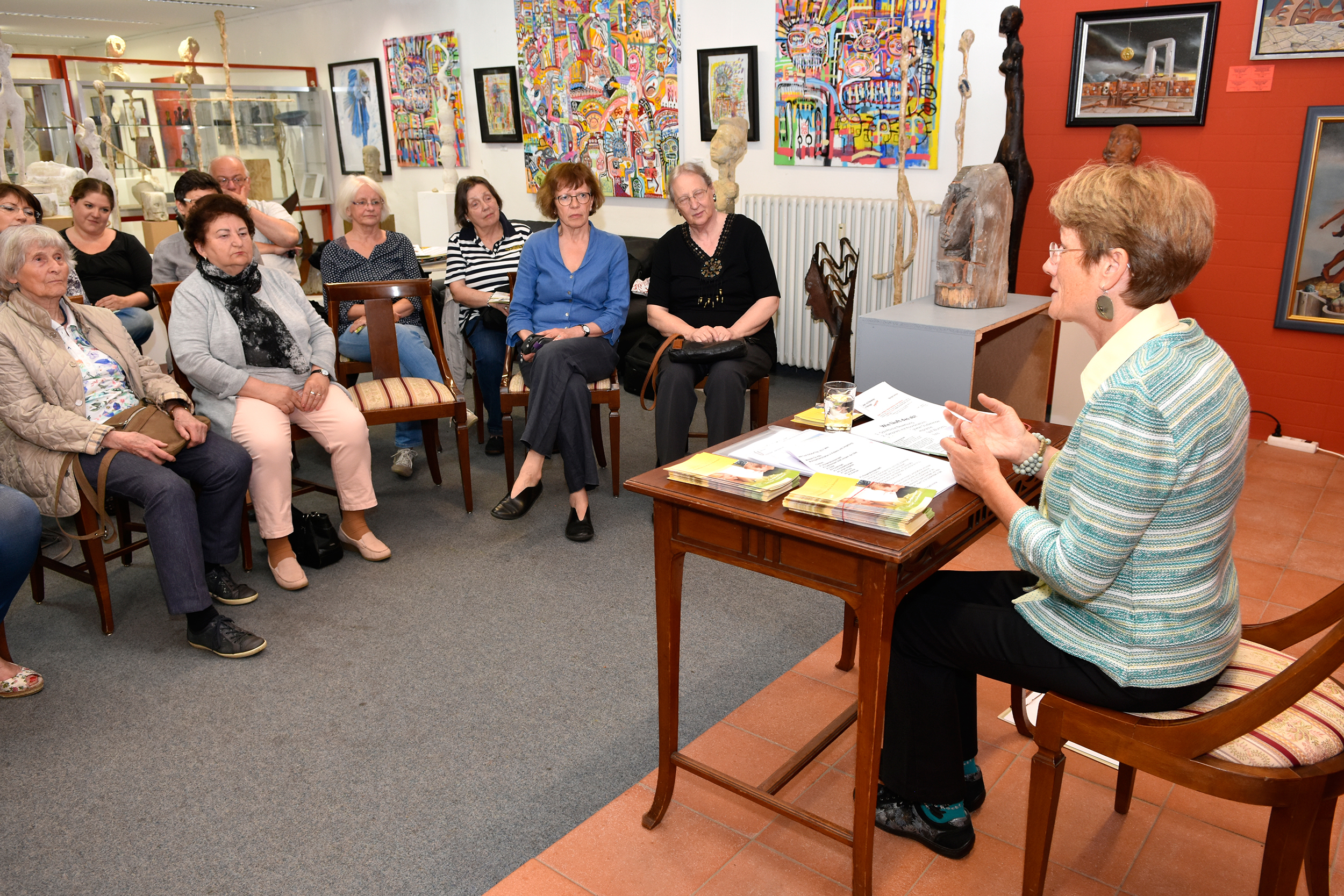 Mechthild Haase ist durch ihre Arbeit bei der Caritas bestens vertraut mit den Nöten älterer Menschen, die nach dem Auszug der Kinder oft alleine in zu großen Häusern wohnen. Gleichzeitig weiß sie um die Probleme junger Leute bei der Wohnungssuche. „Als ich von dem Projekt ‚Wohnen für Hilfe‘ in Koblenz hörte, entstand schnell der Wunsch, so etwas auch in Remagen zu etablieren“, so Haase, die damit bei Anne Dommershausen, die das Projekt „Wohnen für Hilfe“ beim Studierendenwerk Koblenz betreut, offene Türen einrannte. Anne Dommershausen nahm die Gelegenheit gerne wahr, das Konzept in der Galerie Rosemarie Bassi in Remagen vorzustellen und dafür zu werben. Begleitet wurde sie von Ursula Noll aus Remagen, die bereits mehreren Studierenden ein Zuhause bieten konnte und von ihren Erfahrungen berichtete.