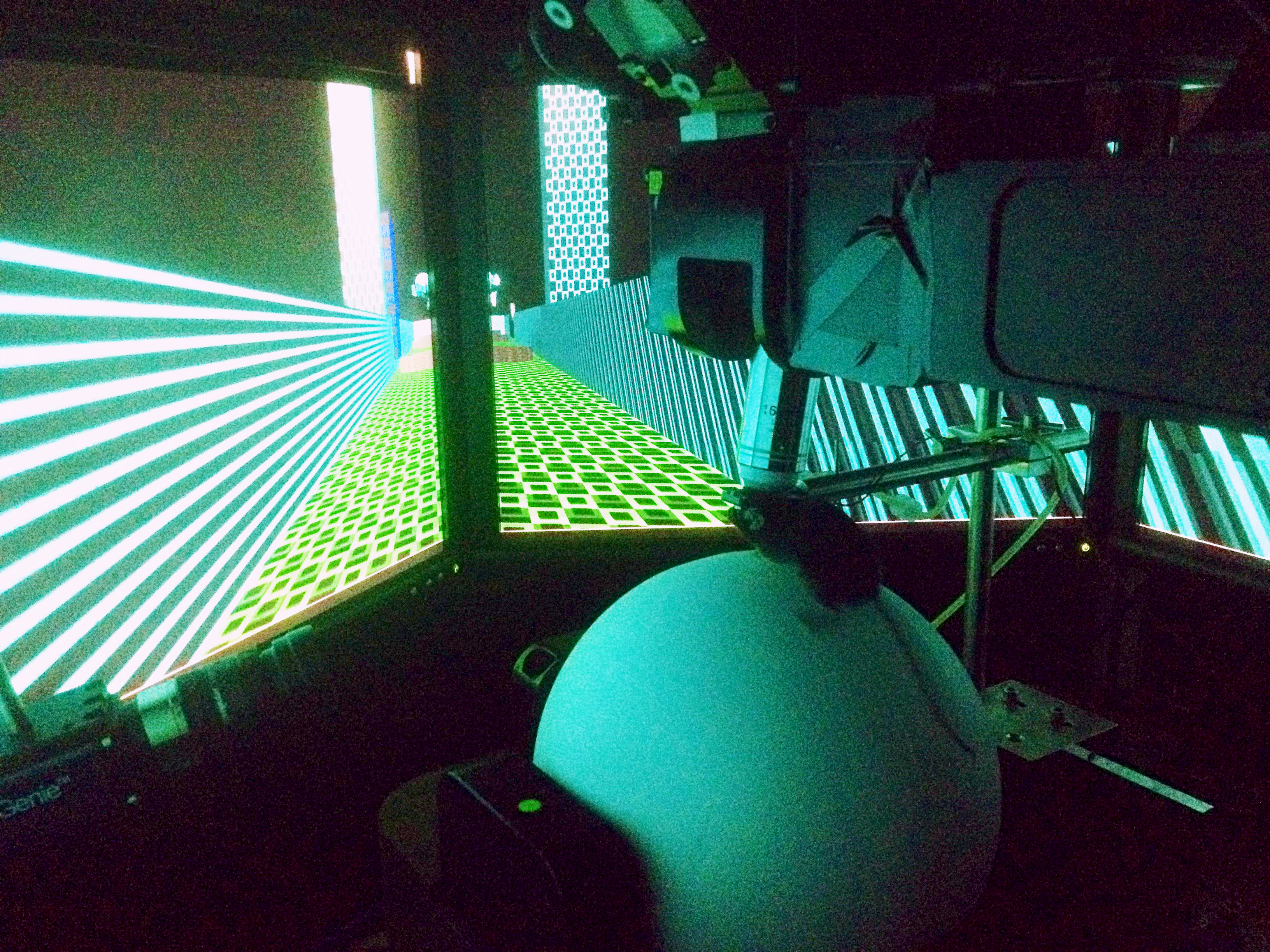 Take a few steps forward, stop, and look around. In the world of the video game, the walls that depict a corridor four meters long are made up of green and blue patterned blocks. The floor is marked with turquoise dots. A short distance away, there’s a brown disc on the floor that looks like a cookie. That’s the symbol for the reward location. The mouse heads for it, gets there, and the symbol disappears. The next cookie promptly appears a bit further down the corridor. The mouse is surrounded by monitors and is standing on a styrofoam ball that is floating on compressed air and turns beneath the mouse when it runs. The ball makes it possible to transfer of the mouse’s movements to the virtual environment. If the mouse reaches the reward symbol, a straw is used to give it a drop of soy milk and stimulate it to form memories of its experiences in the virtual world. The mouse learns when, and at which location, it will receive a reward. It also learns how to locate itself and discriminate between different corridors in the video game.