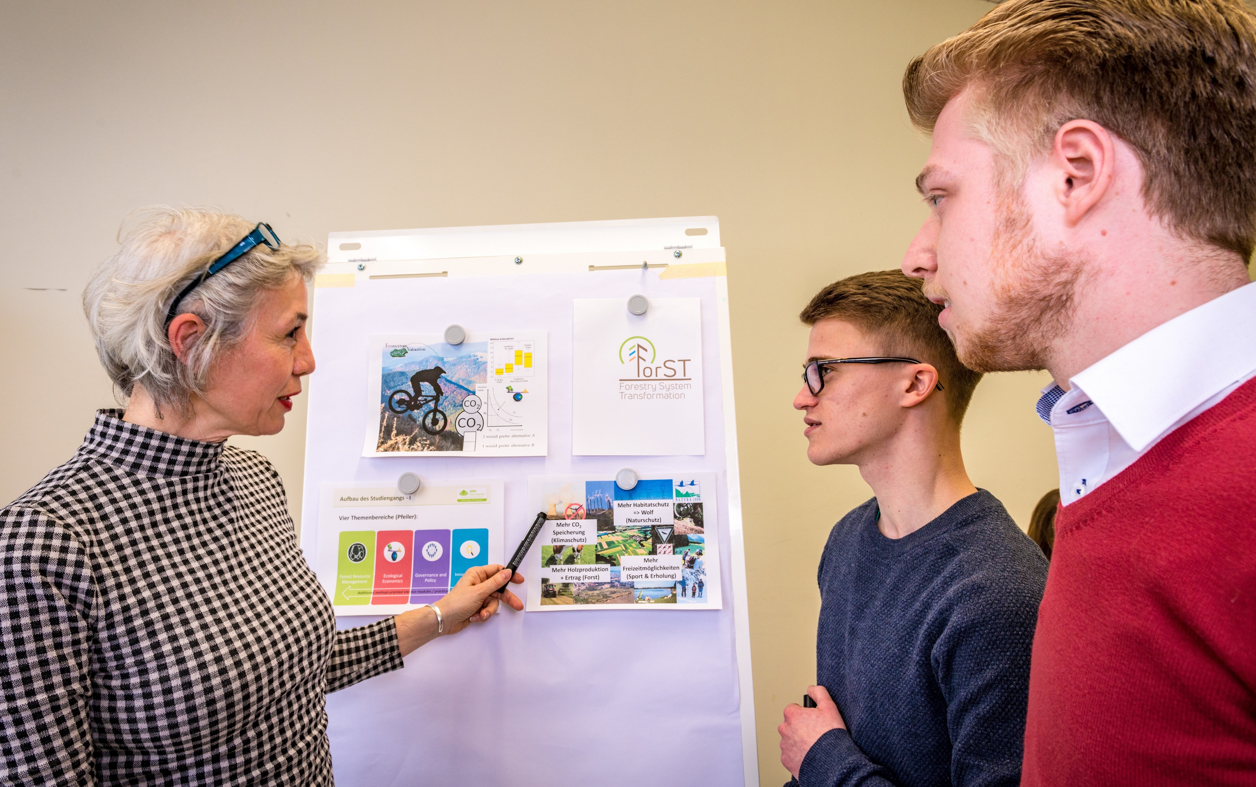 Die globale Waldwirtschaft muss zukünftig mit einer wachsenden Zahl von Interessen und Zielkonflikten bei der Waldbewirtschaftung umgehen, die Nutzen und Lebensqualität entscheidend bestimmen. Ziel ist es, innovative politische und ökonomische Instrumente, Strategien und Bewertungsmethoden anzuwenden, mit denen die Bandbreite an Waldökosystemleistungen vergrößert und nachhaltig gefördert werden kann. Mithilfe einer starken sozio-ökonomischen Perspektive werden Ökosystemfunktionen und -leistungen wie Biodiversitäts- und Klimaschutz, Lawinenschutz, die Wasser- und Luftreinhaltung, sowie die ästhetischen und gesundheitsfördernden Wirkungen des Waldes erfasst und analysiert, um sie in politische und wirtschaftliche Entscheidungsprozesse einzuspeisen. Im Laufe des 4-semestrigen Studiums entwickeln die Studierenden ein Verständnis für die Auswirkungen sich verändernder Rahmenbedingungen und einer sich verändernden Nutzung von Waldressourcen auf Waldökosysteme, Ökosystemleistungen und die damit verbundenen Wertschöpfungsketten. Durch die Entwicklung von Lösungswegen werden die Absolvent*innen befähigt, gesellschaftliche Trends zu erkennen, Veränderungsprozesse anzustoßen, kritisch zu hinterfragen und aktiv mitzugestalten. Strategien der Inno-vationsförderung, vom neuen Holzprodukt bis zu politischen Transformationsprozessen, begleiten die Studierenden durch das Studium bis zum eigenen praxisnahen Transformationsprojekt.