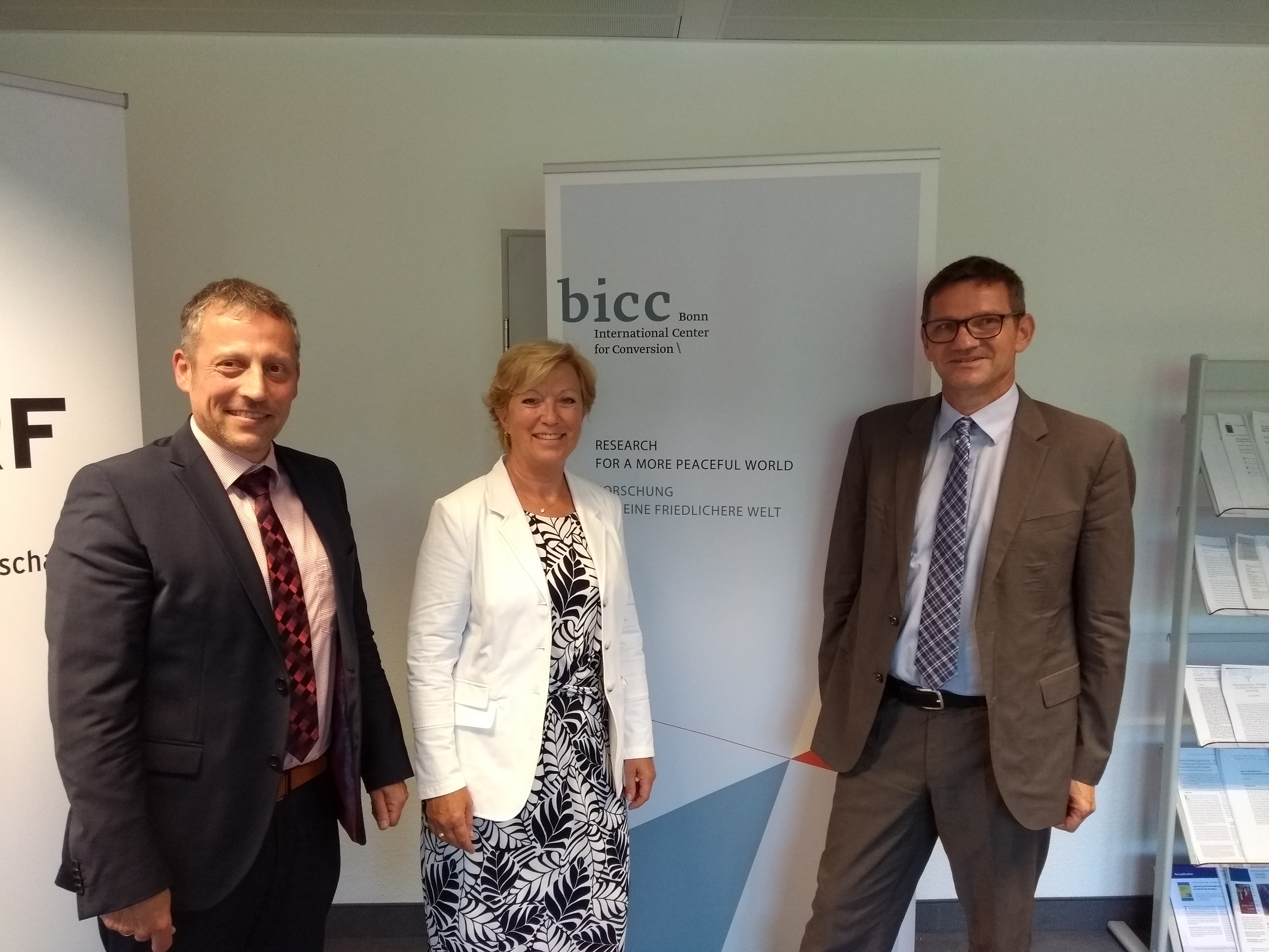 Das BICC (Bonn International Center for Conversion) ist das größte Friedens- und Konfliktfor-schungsinstitut in Nordrhein-Westfalen. Am 7. Juni 2018 informierte sich Annette Storsberg, Staatssekretärin im Ministerium für Kultur und Wissenschaft des Landes Nordrhein-Westfalen, bei einem Hausbesuch über die Arbeit des BICC.