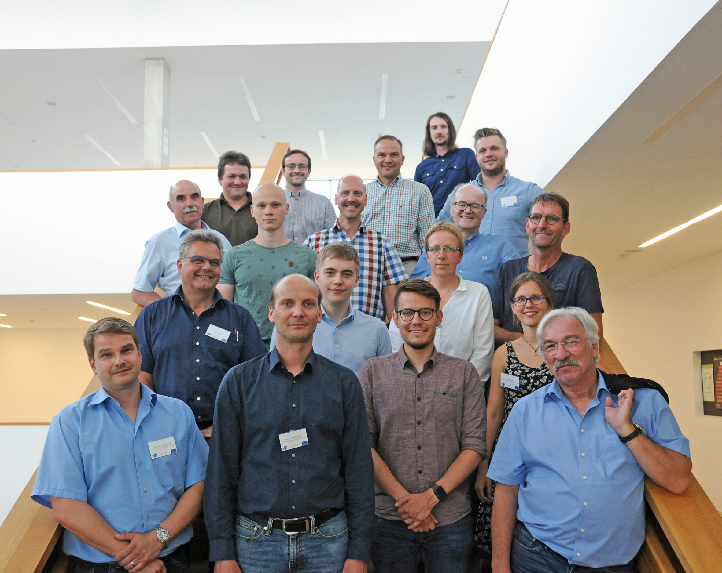 Vertreter der Unternehmen waren am 4. Juni 2018 zu einer Auftaktveranstaltung an die JMU gekommen. Sie diskutierten mit Informatikprofessor Andreas Hotho und den Geographieprofessoren Roland Baumhauer und Heiko Paeth – jeweils mit Promovierenden und anderen Mitarbeitern –über das weitere Vorgehen im Projekt.