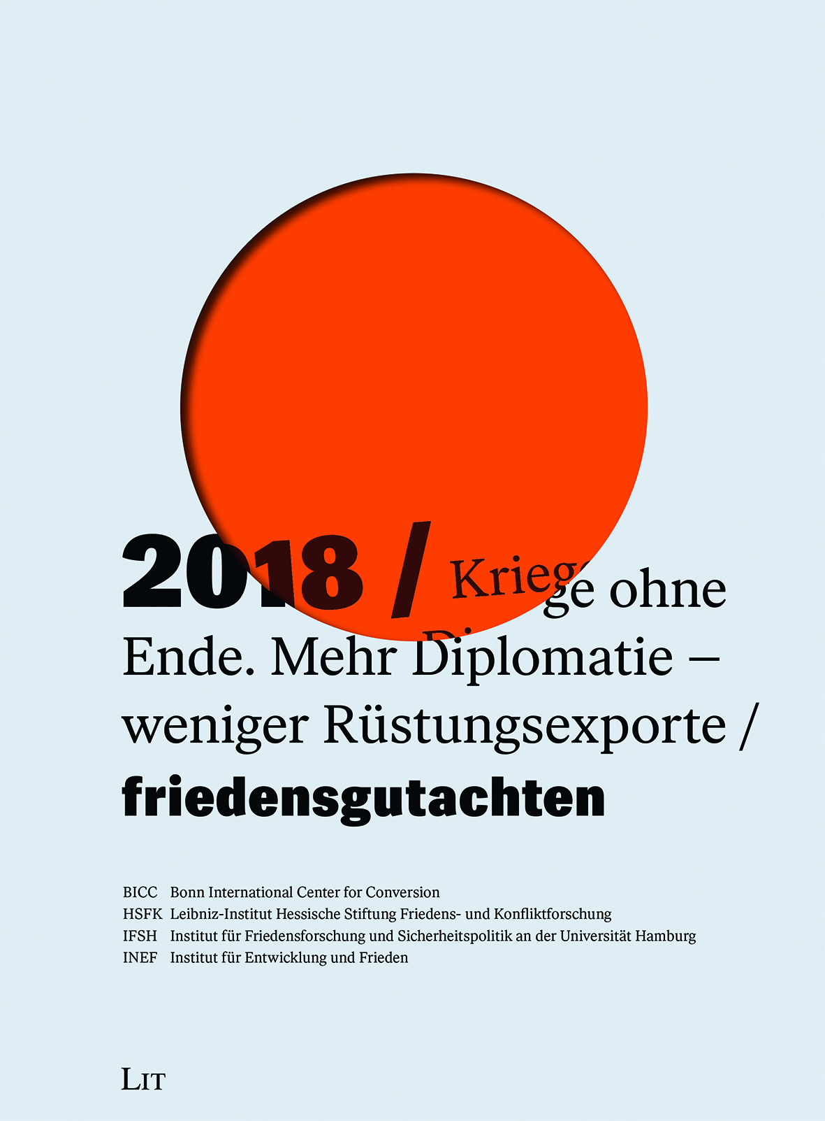 Berlin, 12. Juni 2018. Am 12. Juni um 9:30 Uhr haben die führenden deutschen Friedensfor-schungsinstitute auf der Bundespressekonferenz in Berlin das Friedensgutachten 2018 vorgestellt. Sie fordern von der Bundesregierung mehr Diplomatie und restriktive Rüstungsexporte. Die gemeinsame Jahrespublikation des BICC (Bonn International Center for Conversion), des Leibniz-Instituts Hessische Stiftung Friedens- und Konfliktforschung (HSFK), des Instituts für Entwicklung und Frieden (INEF) und des Instituts für Friedensforschung und Sicherheitspolitik an der Universität Hamburg (IFSH) analysiert aktuelle Gewaltkonflikte, zeigt Trends der internationalen Außen-, Sicherheits- und Entwicklungspolitik auf und gibt Empfehlungen für die Politik. 2018 erscheint das Friedensgutachten in einem neuen Format und Design, mit einer neuen Kapitelstruktur und noch pointierteren Empfehlungen.