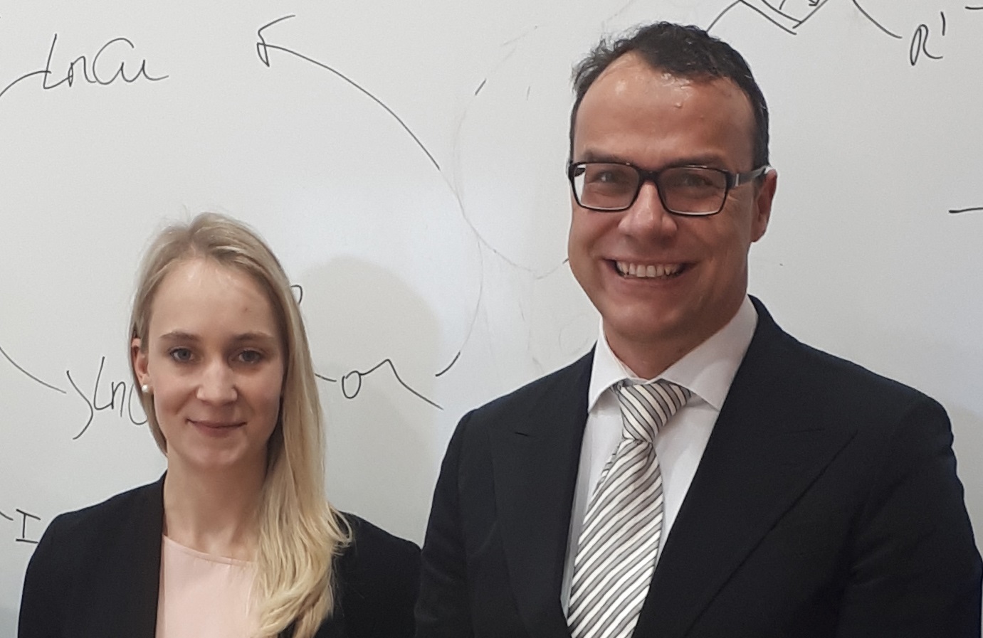Parallel gelang es den Forschenden auch, die Chiralität des erzeugten Moleküls zu beherrschen, was gerade bei der Herstellung von Medikamenten von großer Bedeutung ist. Chiralität oder auch „Händigkeit“ von Molekülen beschreibt die Tatsache, dass zwei Moleküle aus denselben Atomen, aber spiegelverkehrt aufgebaut sein können – gleich der rechten und der linken Hand. Von diesen sogenannten Enantiomeren kann eine Variante nützlich und die andere schädlich sein und es wird in der Herstellung von Medikamenten heute großer Wert darauf gelegt, nur die kurative Variante einzusetzen. So stellt man sicher, dass Medikamente sehr spezifisch wirken und durch den „chiralen Zwilling“ keine ungewollten Nebenwirkungen entstehen. Kathrin Heckenbichler erläutert Prozess und Ergebnis der biokatalytischen Umsetzung des Substrats: „Um eine optimale chirale Erkennung zwischen dem Enzym und Substrat zu ermöglichen, designten wir ein Substrat mit einem großen Rest. Dadurch gelang es uns, die räumlichen Bedingungen im aktiven Zentrum des Enzymes ideal auszunützen, um ein Cyclopropan in hoher Enantiomerenreinheit herzustellen.“ Den Forschenden gelang es so, von zwei möglichen chiralen Dreiringen nur das erwünschte Enantiomer herzustellen.