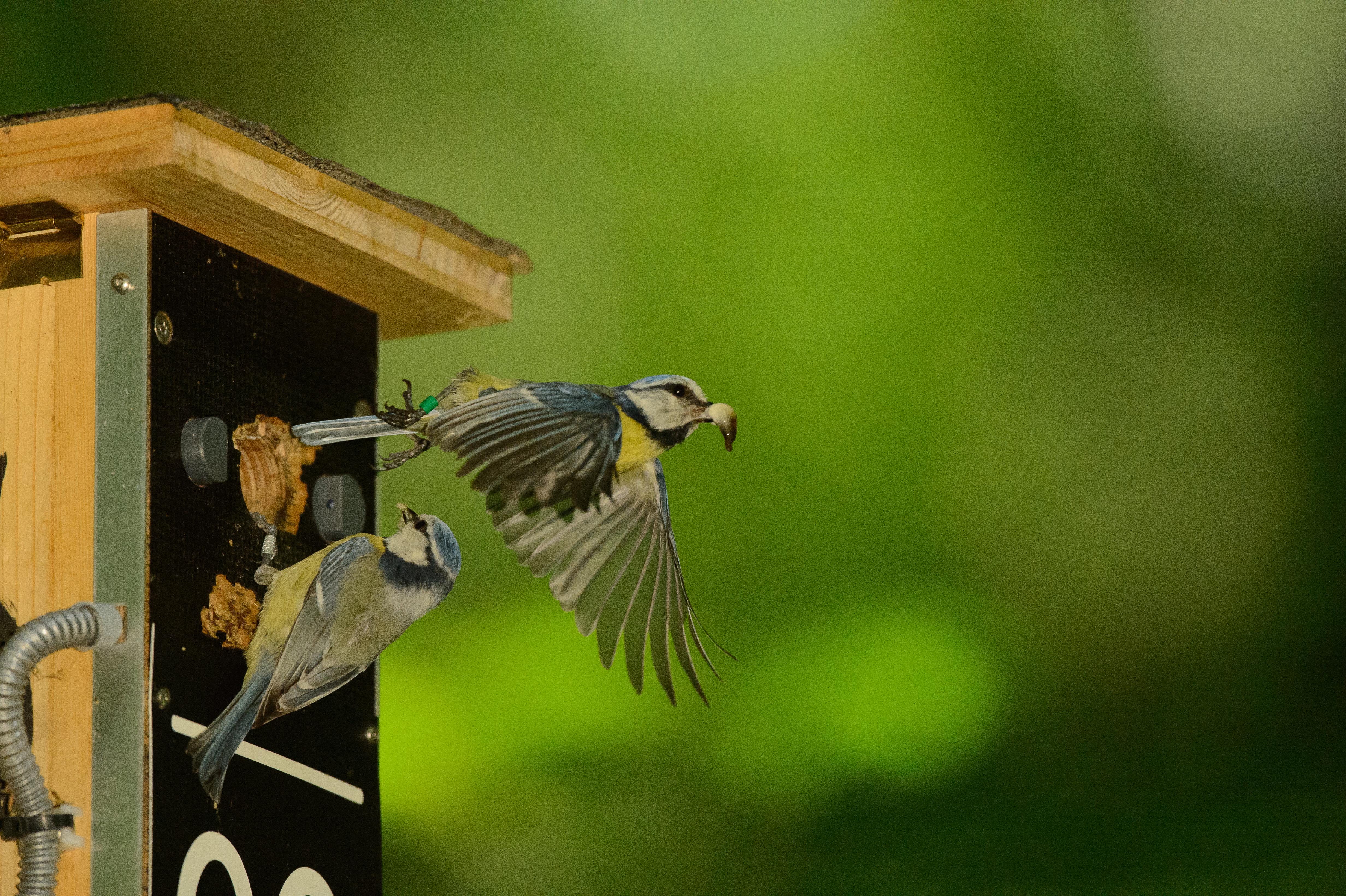 Dazu haben die beiden Wissenschaftler alle erwachsenen Blaumeisen in ihrer Studienfläche mit einem winzigen Microchip-Transponder ausgestattet. In alle Nestboxen in der Fläche wurde ein automatisches Überwachungssystem eingebaut, das jeden Besuch eines Vogels mit Transponder über das ganze Jahr aufzeichnete. So konnten sie jeden Besuch der 277 Nestboxen analysieren und feststellen, wann ein Elternteil zuletzt am Nest war. Im Falle des plötzlichen Verschwindens eines Elternteils haben sie untersucht, wie oft das verbleibende Elternteil das Nest vor und nach dem Verschwinden seines Partners besucht hat.