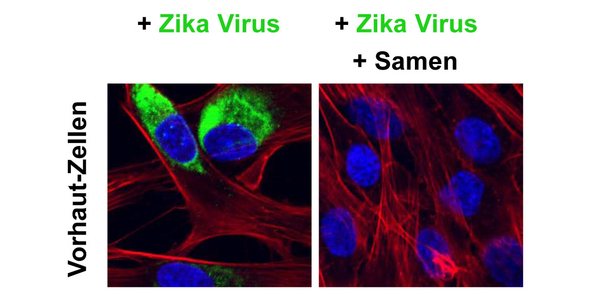 The Zika virus, which is particularly prevalent in Central and South America as well as the Pacific islands, can cause severe courses of meningitis and serious developmental disorders in the brains of newborns, such as microcephaly ('small head'). Ulm's virologists and their research partners have investigated the sexual transmission of this virus by testing in the lab how semen affects Zika infection: 'Semen is rich in both inorganic and organic bioactive substances, such as proteins, enzymes, cytokines, hormones and ions,' explains study leader Professor Jan Münch, who conducts research at the Institute of Molecular Virology at the University Medical Centre Ulm. These substances influence the vaginal milieu and are key influencing factors when it comes to the infectivity of sexually transmitted diseases. In previous studies, the Institute's scientists discovered that amyloid fibrils in semen dramatically enhance the transmission of the AIDS-causing HI virus. On the other hand, some components of semen can also exhibit anti-bacterial properties. Ulm's researchers set out to investigate how semen and its components affect the infectivity of the Zika virus.