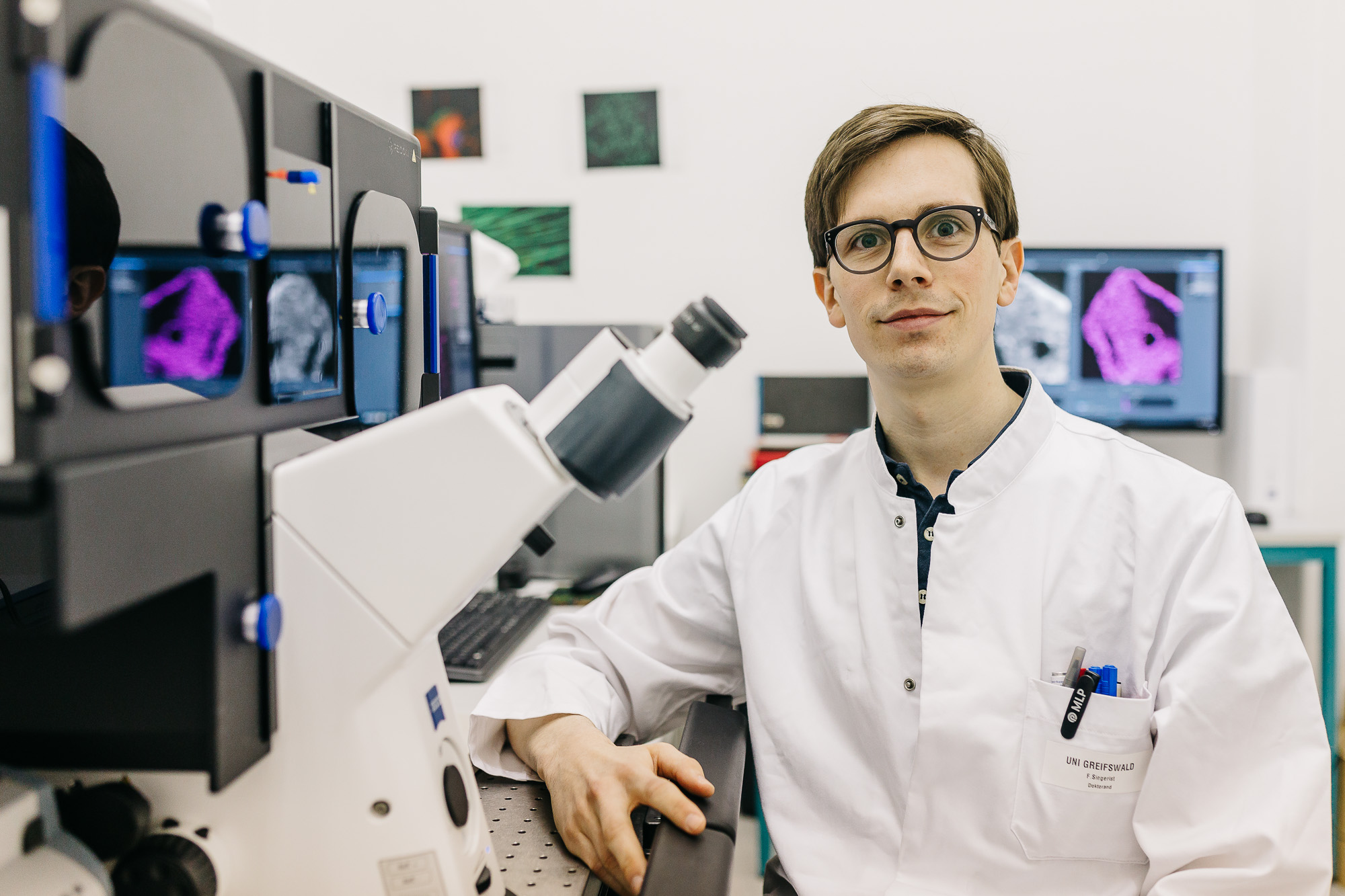 Für Florian Siegerist war die Einladung nach Lindau eine große Überraschung. „Ich fühle mich sehr geehrt, dass ich zum jetzigen Zeitpunkt meiner Laufbahn am Nobelpreisträgertreffen teilnehmen darf, denn ich werde erst im Herbst mein 2. Staatsexamen ablegen“, freut sich der junge Doktorand und Deutschlandstipendiat. Im Rahmen des Gerhard-Domagk-Promotionsstipendiums konnte er seine Doktorarbeit bereits nach dem 1. Staatsexamen fertigstellen. Sein Schwerpunkt ist die Nierenforschung. Für seine Doktorarbeit hat er die glomeruläre Filtrationsbarriere der Nieren von Zebrafischlarven untersucht. Als Mitglied der Arbeitsgruppe von Prof. Dr. rer. nat. Nicole Endlich wendet Florian Siegerist in seiner Forschung vor allem die Super Resolution Mikroskopie an. Im Super Resolution Mikroskop können mittels Lichtmikroskopie Strukturen dargestellt werden, die vorher nicht denkbar waren. Mit dem Einsatz in der Nierenforschung stellt diese Technologie ein Alleinstellungsmerkmal für die Greifswalder Universitätsmedizin dar. Die Erfinder der Technologie wurden 2014 mit dem Nobelpreis für Chemie ausgezeichnet. Einen von ihnen, den Physiker Stefan Hell, wird Florian Siegerist nun persönlich in Lindau treffen. Florian Siegerists berufliches Ziel ist es, als forschender Arzt tätig zu sein. Er hofft daher, in Lindau nicht nur einen spannenden Austausch mit anderen jungen Forschern und Nationen zu erleben, sondern vielleicht auch die eine oder andere Forschungskooperation anzuregen.