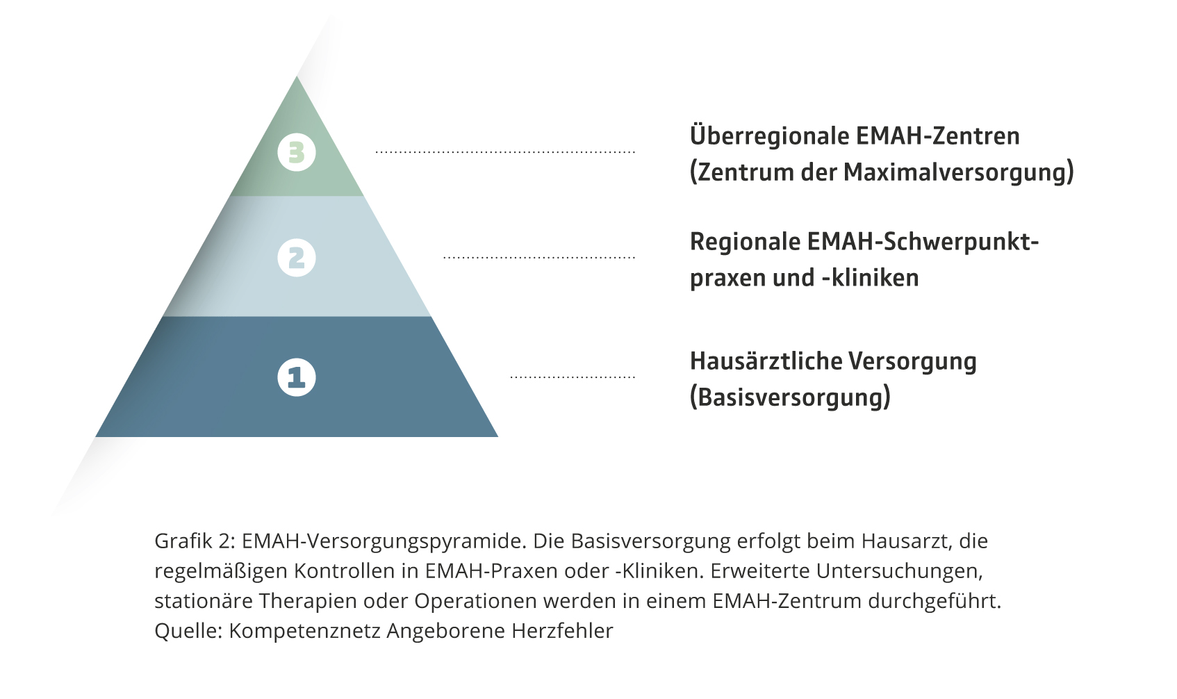 „Treten bei EMAH medizinische Probleme auf, wenden sich diese Patienten zumeist zuerst an ihren Hausarzt oder einen Allgemeinarzt. Dies gilt aber auch, wenn es sich um herzfehlerspezifische Fragen handelt“, wie Prof. Dähnert berichtet. „Damit kommt dem primär versorgenden Arzt die wichtige Funktion zu, für seinen EMAH-Patienten die Weichen für eine herzfehlergerechte Diagnostik und Therapie richtig zu stellen.“ Aufgabe des Haus- und Allgemeinarztes ist es in diesen Fällen, die spezifischen Risiken und die Besonderheiten der angeborenen Herzfehler zu erkennen und Betroffene zu einer regelmäßigen Vor- und Nachsorge in eine spezialisierte, EMAH-zertifizierte kardiologische Praxis oder Ambulanz zu überweisen und so die Behandlungskontinuität zu sichern.