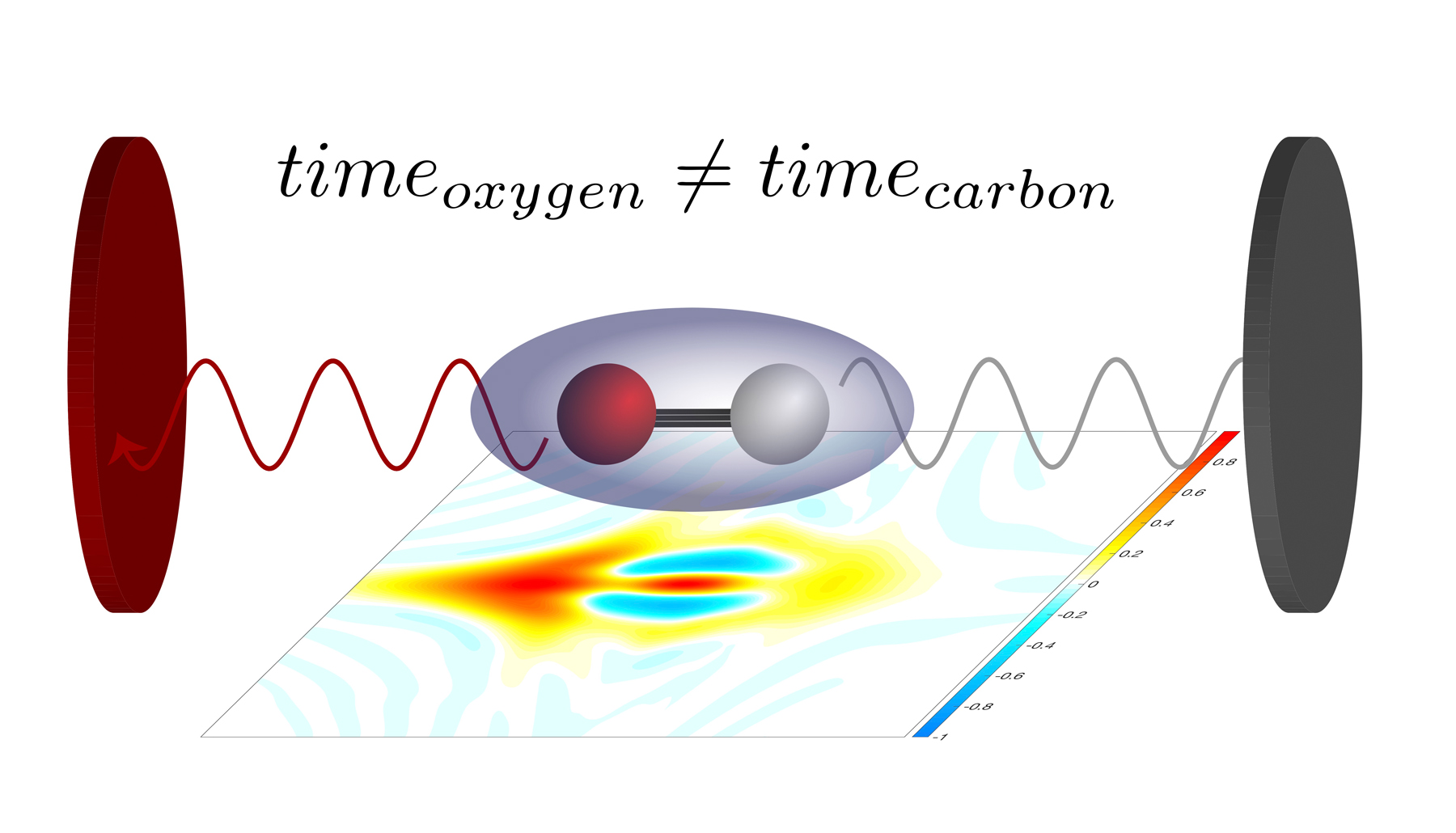 Keller und ihre Mitarbeiterinnen benutzten dazu Kohlenstoffmonoxid-Moleküle, die aus zwei Atomen – einem Kohlenstoff- und einem Sauerstoffatom – bestehen. Diese Moleküle wurden einem extremen ultravioletten Laserpuls ausgesetzt, der nur wenige Attosekunden dauerte. (Eine Attosekunde ist der milliardste Teil einer Milliardstel Sekunde.) Die Energie der Ultraviolett-Photonen löste dabei ein Elektron aus den Molekülen, und diese zerfielen anschliessend in ihre Einzelatome. Eines davon war jeweils danach als Ion positiv geladen. Mit einem Spezialinstrument massen die Forscherinnen dann, in welche Richtungen die Elektronen und Ionen wegflogen. Mithilfe eines zweiten Laserpulses, der als eine Art Messlatte fungierte, konnten sie ausserdem den genauen Zeitpunkt bestimmen, an dem das Elektron aus dem Molekül heraustrat.