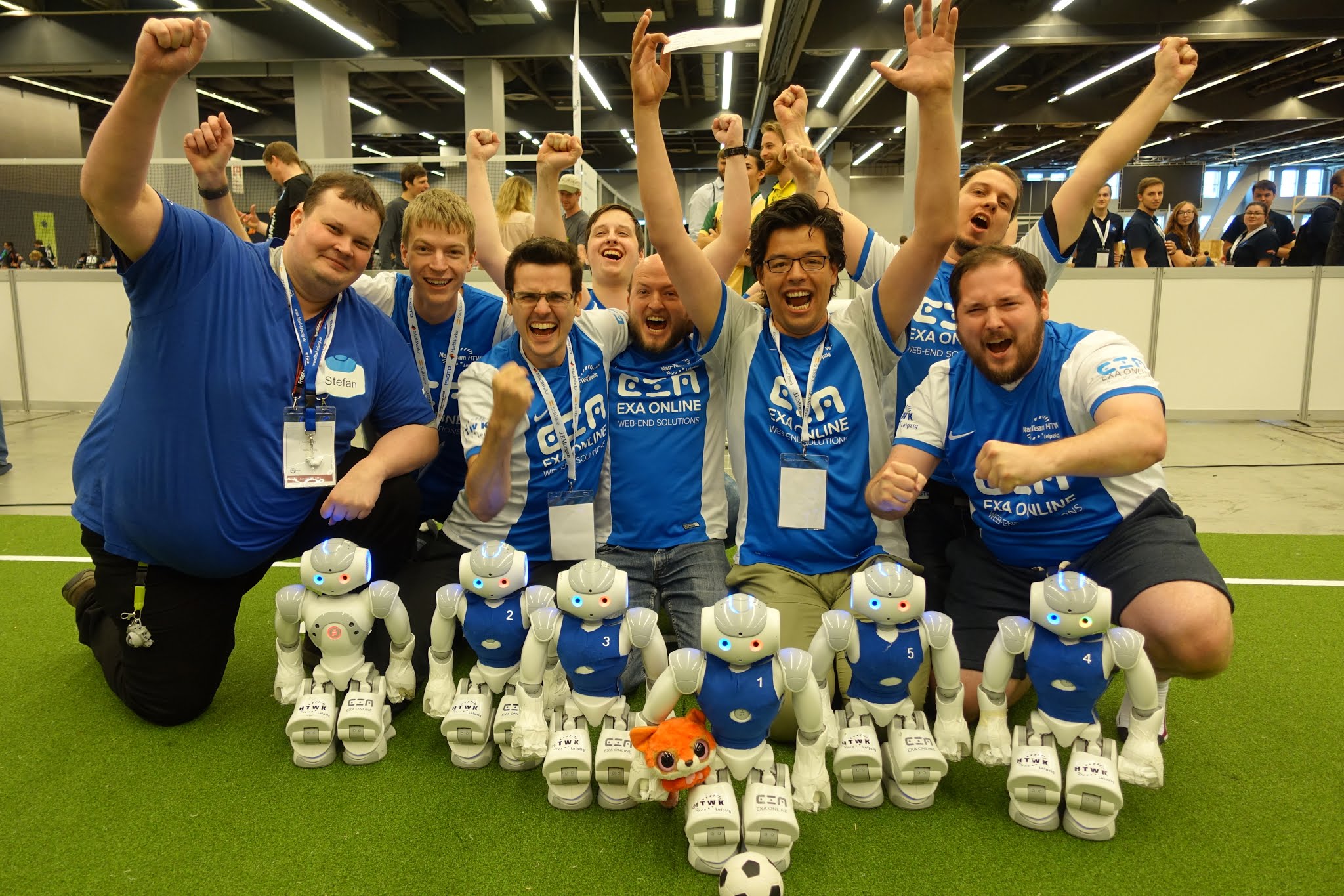Die Freude war entsprechend groß: „Nach neun Jahren in der Standard Platform League sind wir natürlich extrem glücklich, auf dem obersten Treppchen zu stehen. Das Finale war sehr spannend und es war interessant, die zwei komplett verschiedenen Taktiken zu sehen: Unser Team dribbelt den Ball, B-Human hingegen ist für seine langen, präzisen Schüsse bekannt. Diese Schüsse konnten unsere Verteidiger und vor allem unser Torwart jedoch mit Bravour abfangen“, fasst Teamchef Rico Tilgner das Endspiel zusammen.
