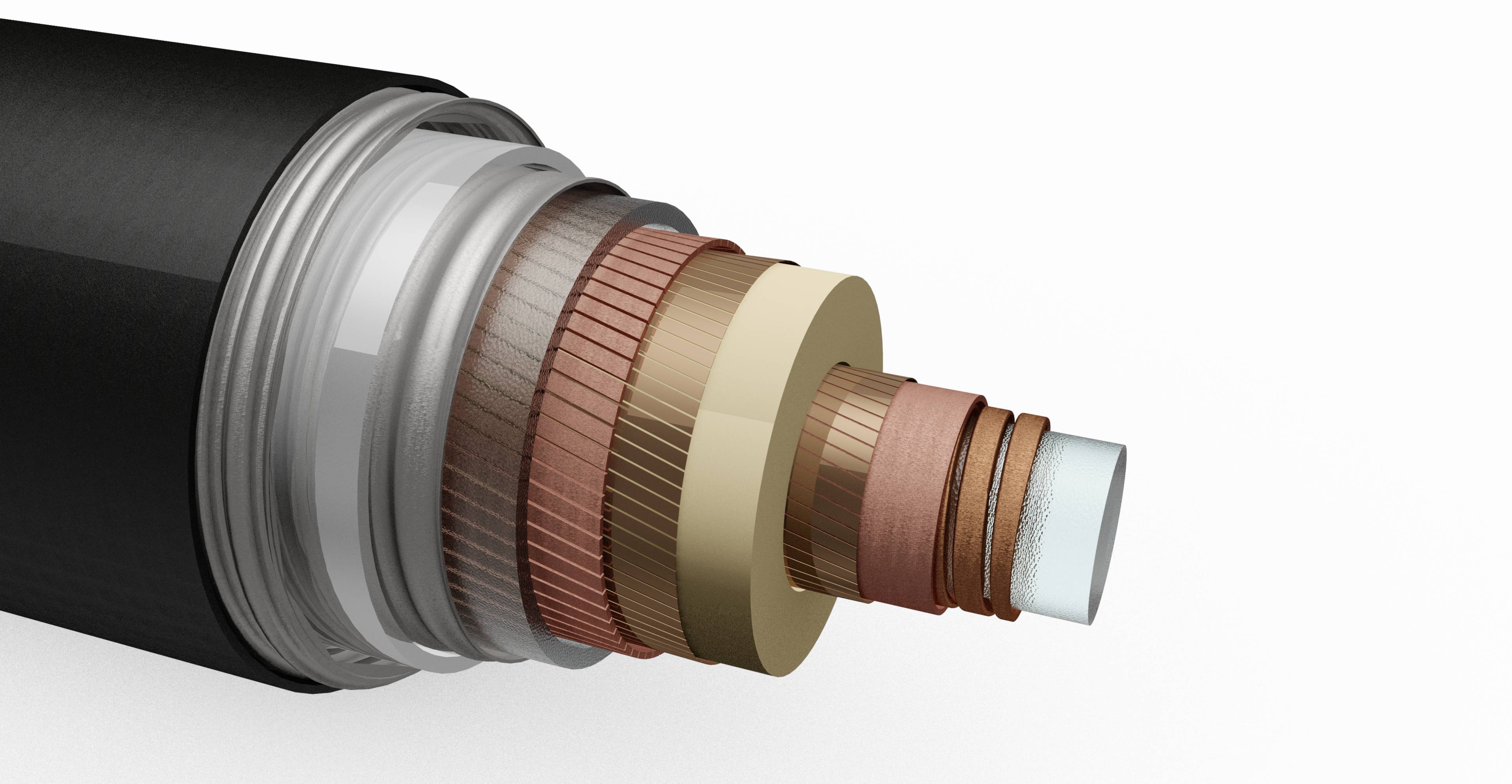 Grafische Darstellung des am KIT entwickelten konzeptionellen Supraleiterkabels für die untersuchte Teilerdverkabelung. (Grafik: ITEP/KIT)