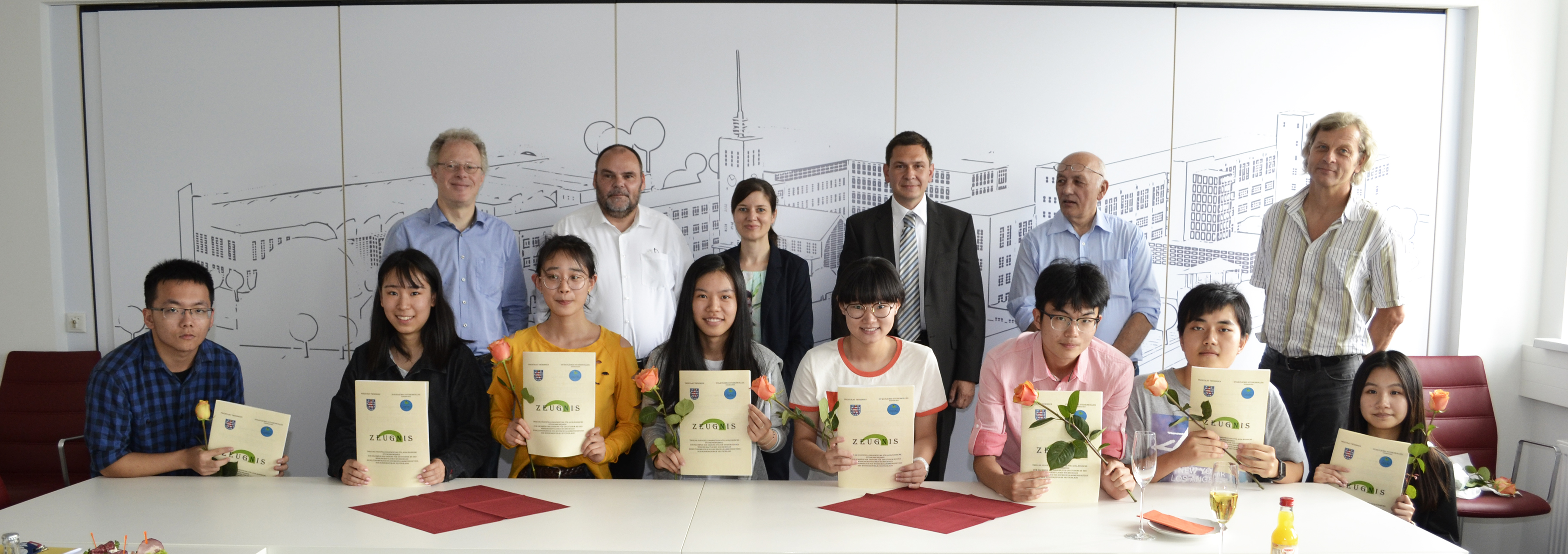 Sie haben den nächsten Schritt geschafft: Acht Frauen und Männer erhielten heute ihre Zeugnisse für die bestandene Eignungsfeststellungsprüfung. Damit können die jungen Chinesen im kommenden Herbst das Studium an der EAH Jena aufnehmen.