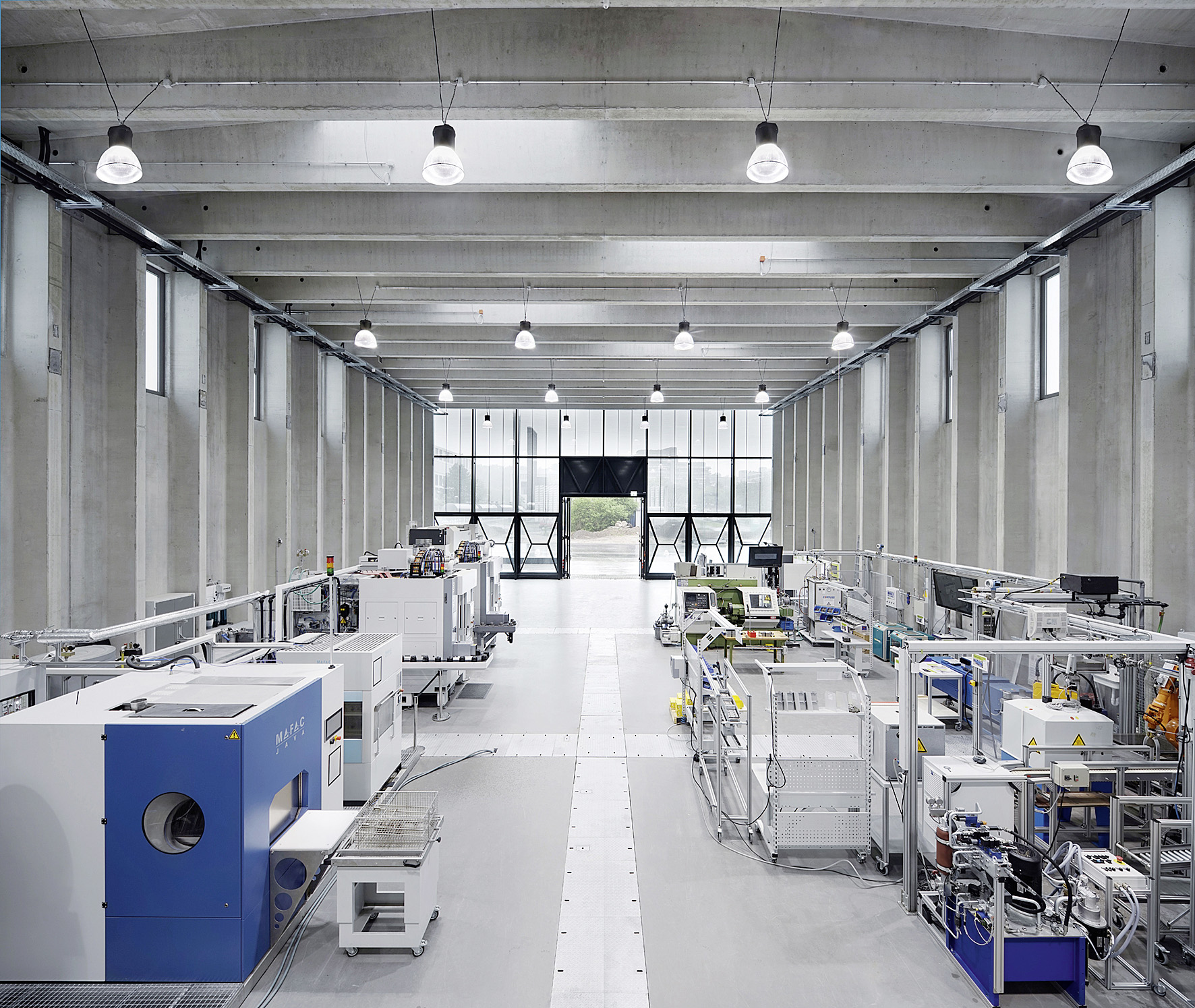 The ETA Factory concept aims to reduce energy consumption and increase load flexibility. This is achieved by treating the energy system for the building and production as a whole. The production area depicts a typical process chain for metalworking and includes characteristic processes such as machining or grinding. Intelligent control systems ensure that there is always enough energy at the right time and in the right place. Energy efficiency played an important role in the choice of machine tools used. These are one fifth more efficient than conventional reference systems.