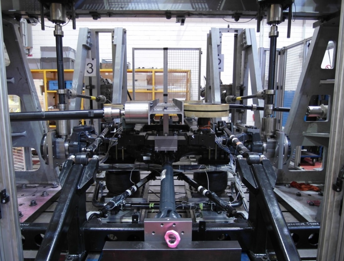 Im Anschluss erfolgte der experimentelle Lebensdauernachweis im Betriebsfestigkeitslabor des Fraunhofer LBF. Dazu bauten die Wissenschaftler eine komplette Achsbaugruppe auf einem hierfür individuell umgerüsteten, servohydraulischen Festigkeitsprüfstand auf und belasteten diese an den Rädern und der Führungseinrichtung mit sechs Hydraulikzylindern in ähnlicher Weise, wie es im realen Betrieb vorkommen würde. Der Belastungsablauf dafür wurde aus den Messdaten gewonnen, indem alle typischen Fahrzustände in einer ausgewogenen Mischung als zeitgeraffte Lastfolge kombiniert wurden. „Auf diese Weise konnten wir die angestrebte Fahrzeuglebensdauer von 30 Jahren bei täglicher Nutzung innerhalb von wenigen Monaten auf dem Prüfstand simulieren“, so Herbert.