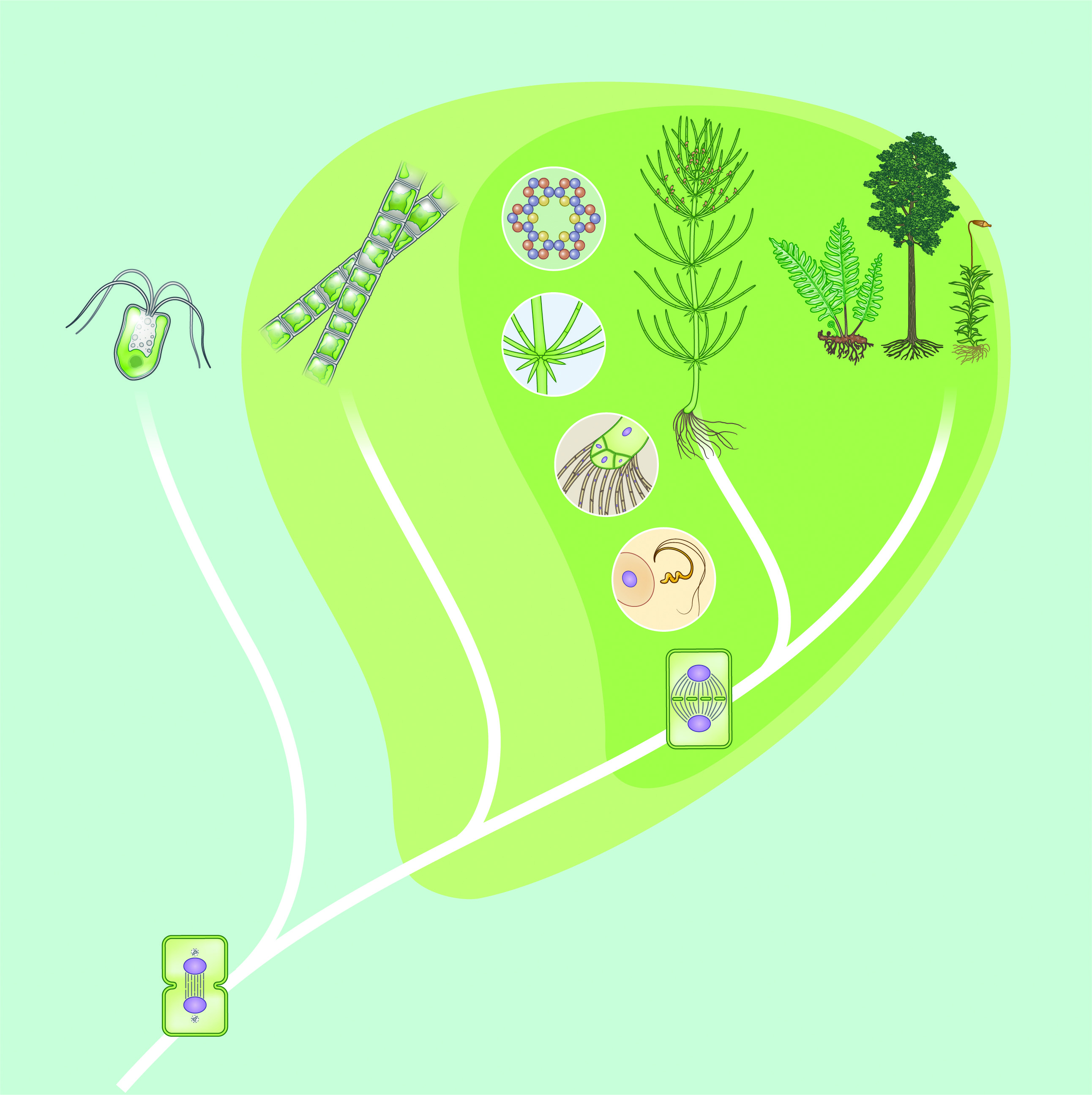 Eine der auffälligsten Neuerungen, die das Autorenteam in den Genen dieser Algen und Landpflanzen nachweist, betrifft die Zellteilung und den Aufbau der Zellwand – kein Wunder, wenn man an die Bedeutung denkt, die der Schutz vor Austrocknung für den Landgang hatte. „Ähnlich wie Landpflanzen führen die Armleuchteralgen eine Zellteilung durch, bei der spezielle Proteine eine Zellplatte zusammensetzen. Diese entwickelt sich anschließend zur neuen Querwand“, schreiben die Wissenschaftlerinnen und Wissenschaftler.