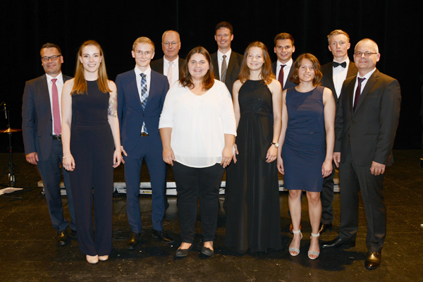 Nachdem alle Absolventen ihre Abschlusszeugnisse durch die Studiengangsleiter entgegengenommen hatten, wurden sieben von ihnen für herausragende Leistungen ausgezeichnet: Katharina Löhrke (Finanz Informatik) erhielt den Preis für das beste Studienergebnis der dualen Bachelorstudiengänge, gestiftet vom Landkreis Hameln-Pyrmont. Die BHW Bausparkasse übergab Rosanna Russo (TenneT TSO) den Preis für die beste Abschlussarbeit im dualen Studiengang Betriebswirtschaftslehre. Die Finanz Informatik zeichnete Kai Dönnebrink (Fiducia & GAD IT) für die beste Abschlussarbeit im dualen Studiengang Wirtschaftsinformatik aus und Jan-Philip Bokeloh (Lenze Operations) erhielt von der Aerzener Maschinenfabrik den Preis für die beste Abschlussarbeit im dualen Studiengang Wirtschaftsingenieurwesen. Anschließend übergab Westfalen Weser Netz den Förderpreis für die beste Bachelorarbeit im Bereich Energiewirtschaft an Maike Boock (Enercity). Stephanie Heske (DB Station & Service) wurde von der Volksbank Hameln-Stadthagen für das beste Studienergebnis im berufsbegleitenden Bachelorstudiengang Betriebswirtschaftslehre ausgezeichnet. Im berufsbegleitenden Masterstudiengang General Management erzielte Sebastian Reh (Uniper IT) das beste Studienergebnis und erhielt die von Lenze gestiftete Auszeichnung.