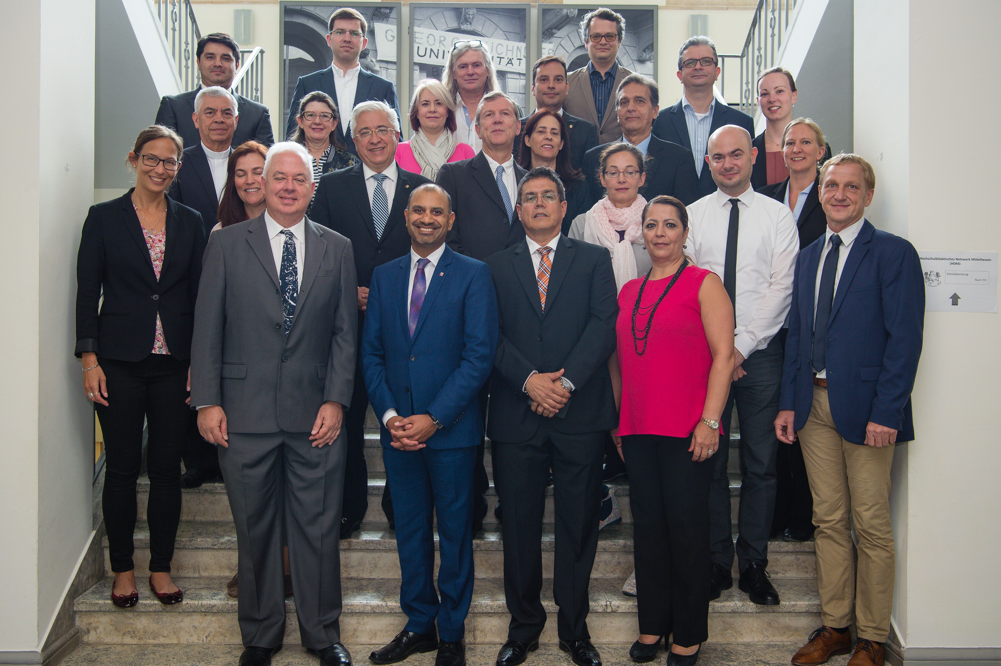 Die kolumbianische Delegation von hochrangigen Vertreterinnen und Vertretern Medellíner Universitäten ist seit dem 6. Juli in Deutschland, um Verbindungen mit deutschen Universitäten zu pflegen und neue wissenschaftliche Kontakte zu knüpfen. Die Gäste machten Station in Berlin, Wittenberg, Leipzig, und Eisenach, ehe sie zu Gast an der JLU in Gießen waren. Von hier aus ging es weiter nach Köln, Bonn, Aachen, Karlsruhe, Hohenheim und München, ehe die kolumbianische Delegation am 19. Juli die Heimreise antreten wird.