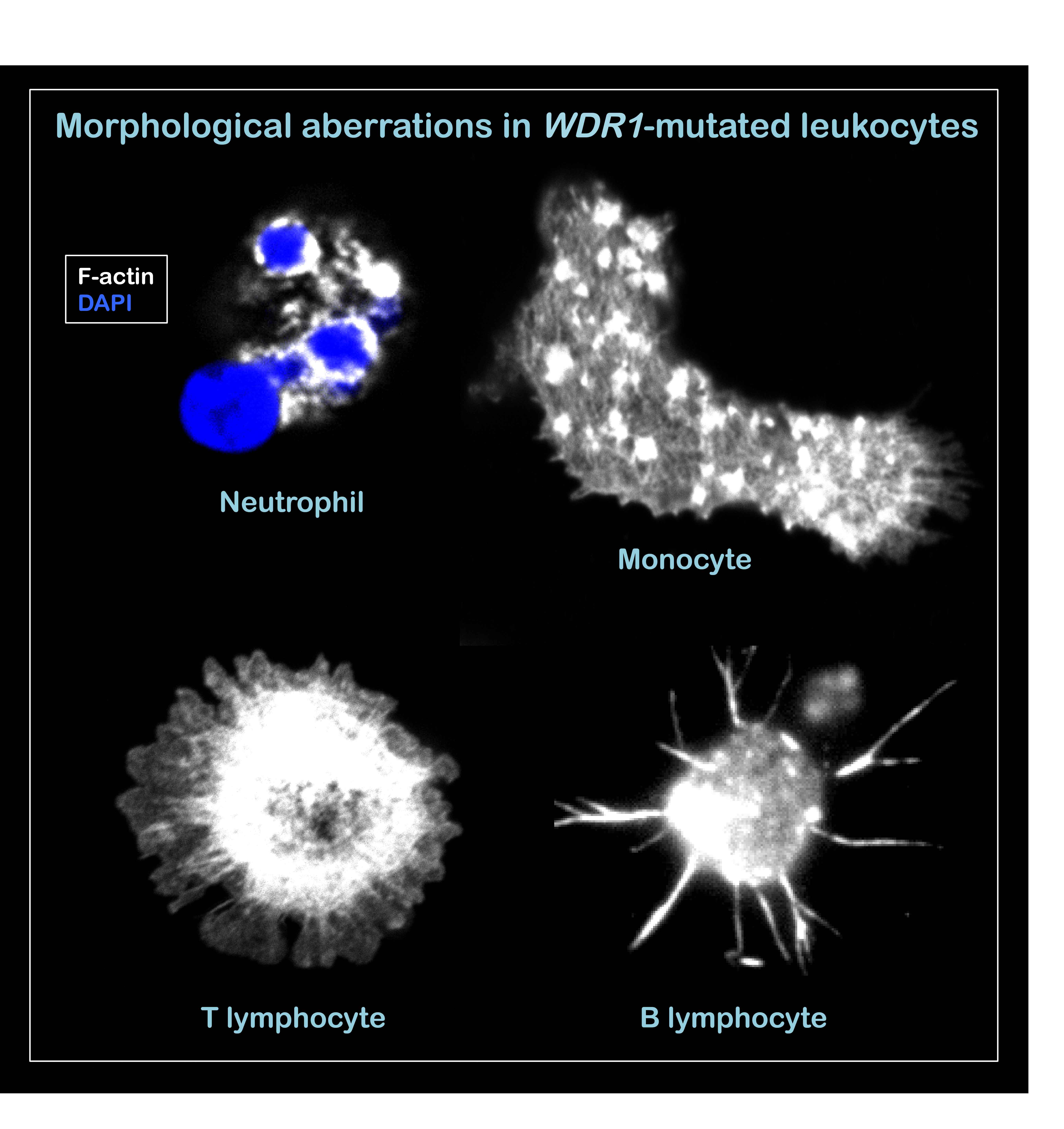 Sechs PatientInnen wurden im Rahmen dieser Arbeit untersucht, die schwere Lungen-, Haut- und Mundschleimhautinfektionen aufwiesen. Genetische Analysen ihrer Genome ergaben, dass sie alle Mutationen in dem Gen für das Protein WDR1 tragen, einem wichtigen Faktor für den Umsatz der Aktin-Filamente und damit für die dynamische Umgestaltung des Zytoskeletts. Kurz zuvor konnte in anderen Studien gezeigt werden, dass der angeborene Teil des Immunsystems durch WDR1-Mutationen beeinträchtigt wird – dass sie auch in die adaptiven Immunantwort eine Rolle spielen, war hingegen unbekannt. Durch eine Vielzahl an umfangreichen Experimenten und Analysen fanden die WissenschaftlerInnen schließlich heraus, dass eine WDR1-Defizienz auch zu einer abnormalen T-Lymphozyt-Aktivierung und B-Lymphozyt-Entwicklung führt.