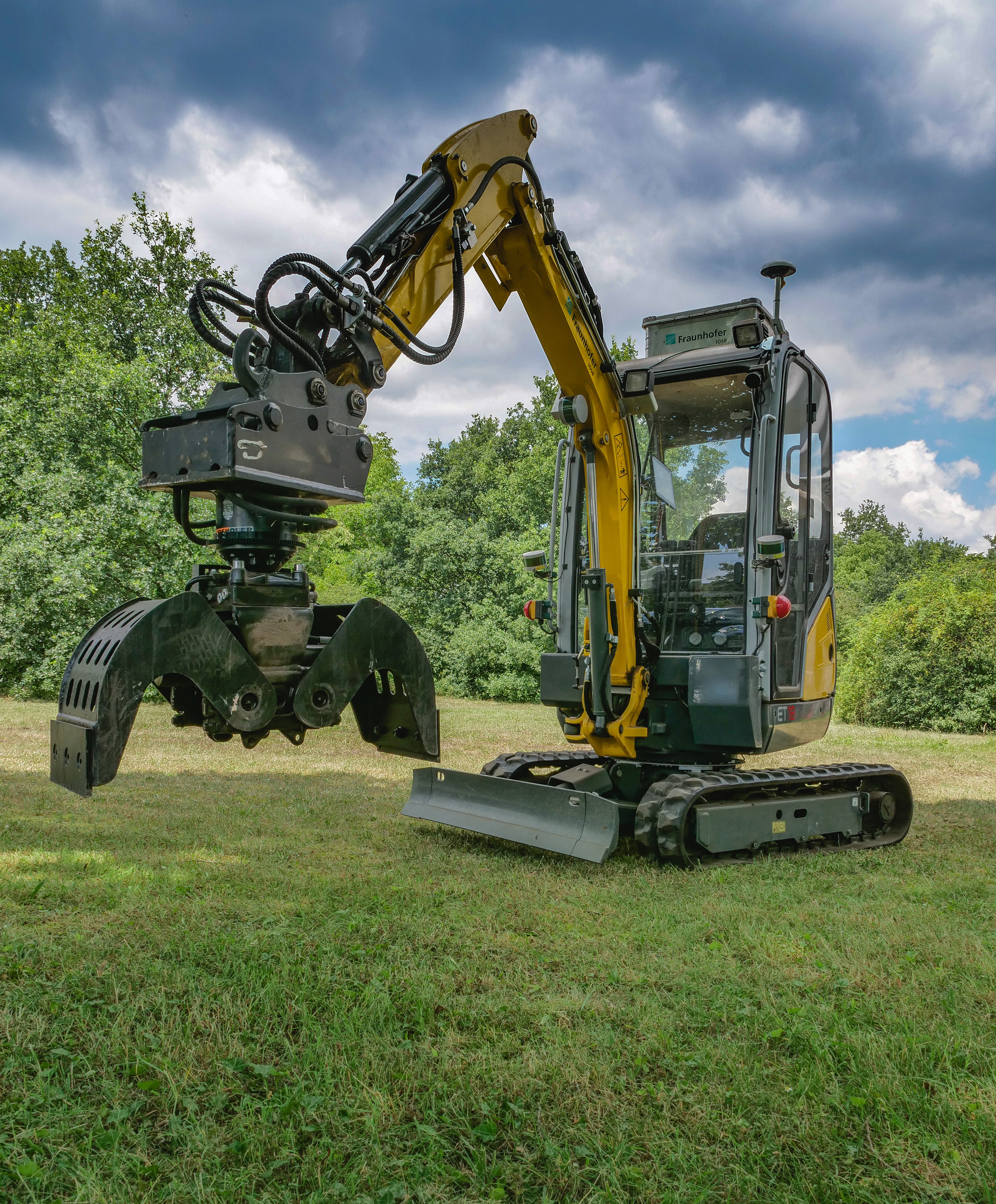 Das Institut verfügt bereits über mehrere geländegängige Roboterfahrzeuge sowie einen ersten automatisierten Bagger (siehe oben). Christian Frey: »Nun geht es darum, diese Autonomiefähigkeiten auf weitere Maschinen zu übertragen und sie noch flexibler, leistungsfähiger sowie leichter handhabbar zu machen.«