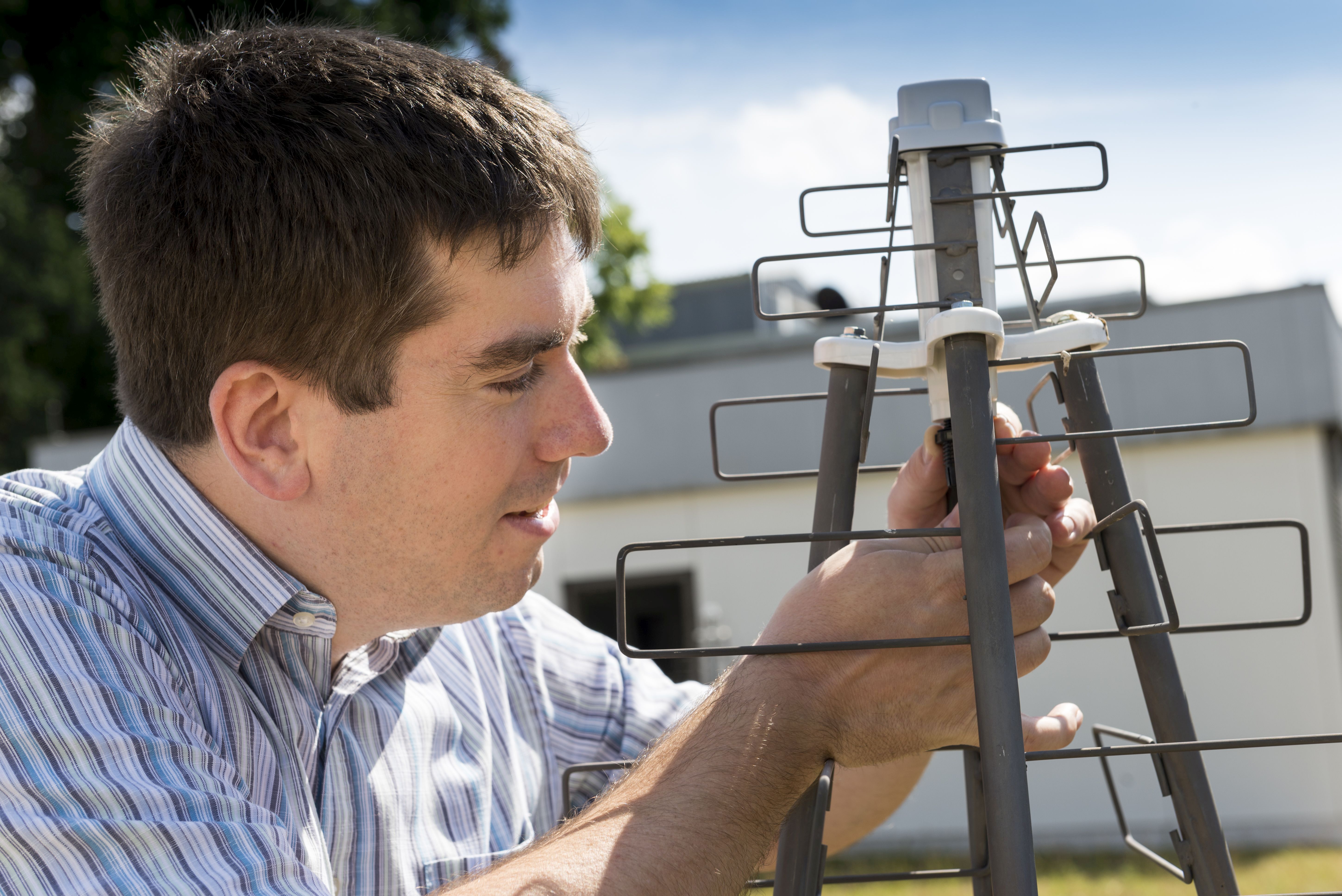Forschungsschwerpunkt von Dr. Frank Schröder ist die Astroteilchenphysik, insbesondere die Radiomessung hochenergetischer kosmischer Strahlung (Foto: Markus Breig, KIT)