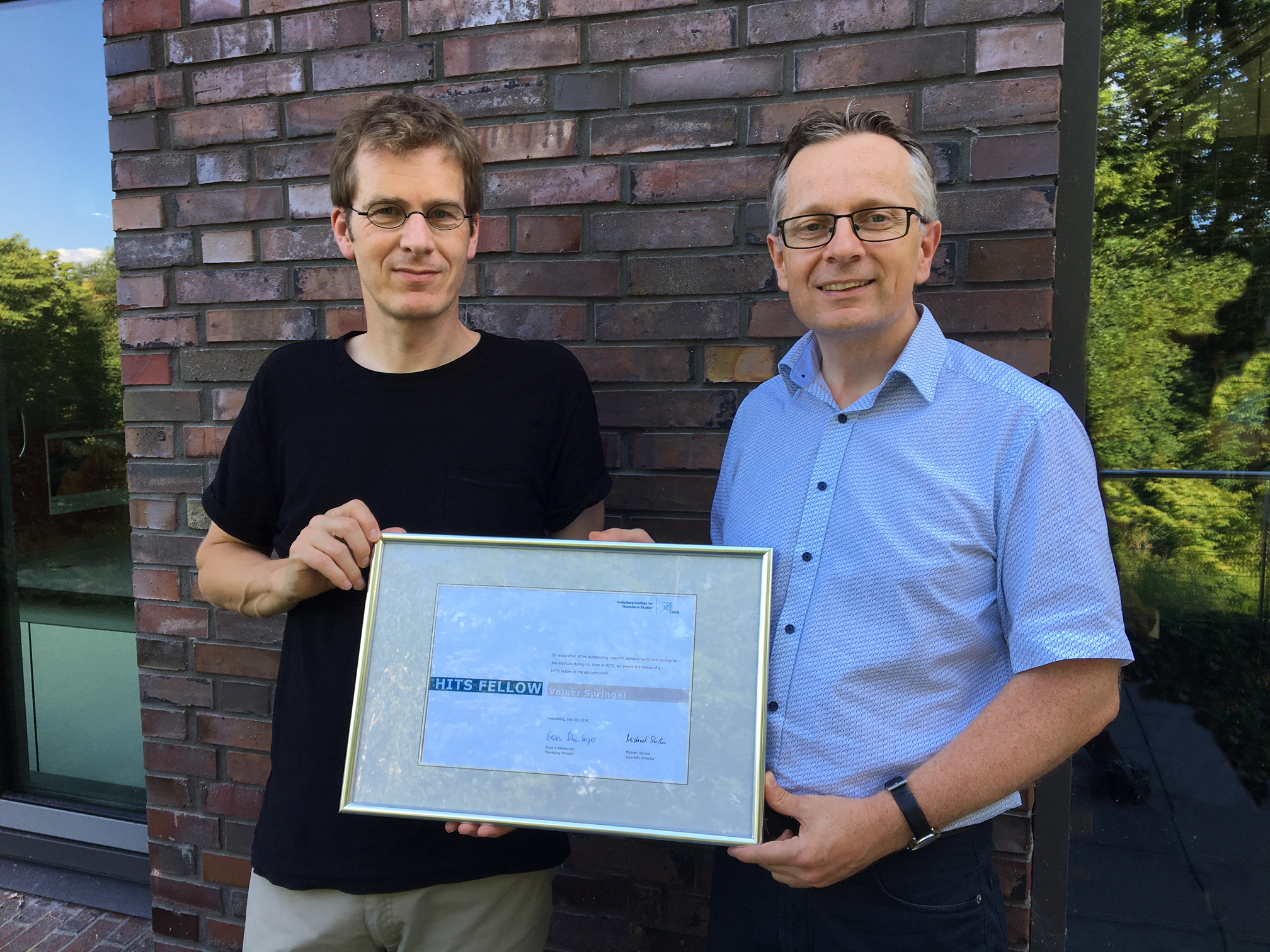 In recognition of his “exceptional scientific achievements and his service to the institute during his time at HITS,” Volker Springel was made an honorary “HITS Fellow” – the institute’s highest honor – in a ceremony on 23 July. “I will always remain connected to HITS,” Springel stressed, “and do my best to further support the institute. I am sure that it will continue to be successful.” Together with Heidelberg University, HITS will soon appoint a new scientist from the field of “Theoretical Astrophysics.”