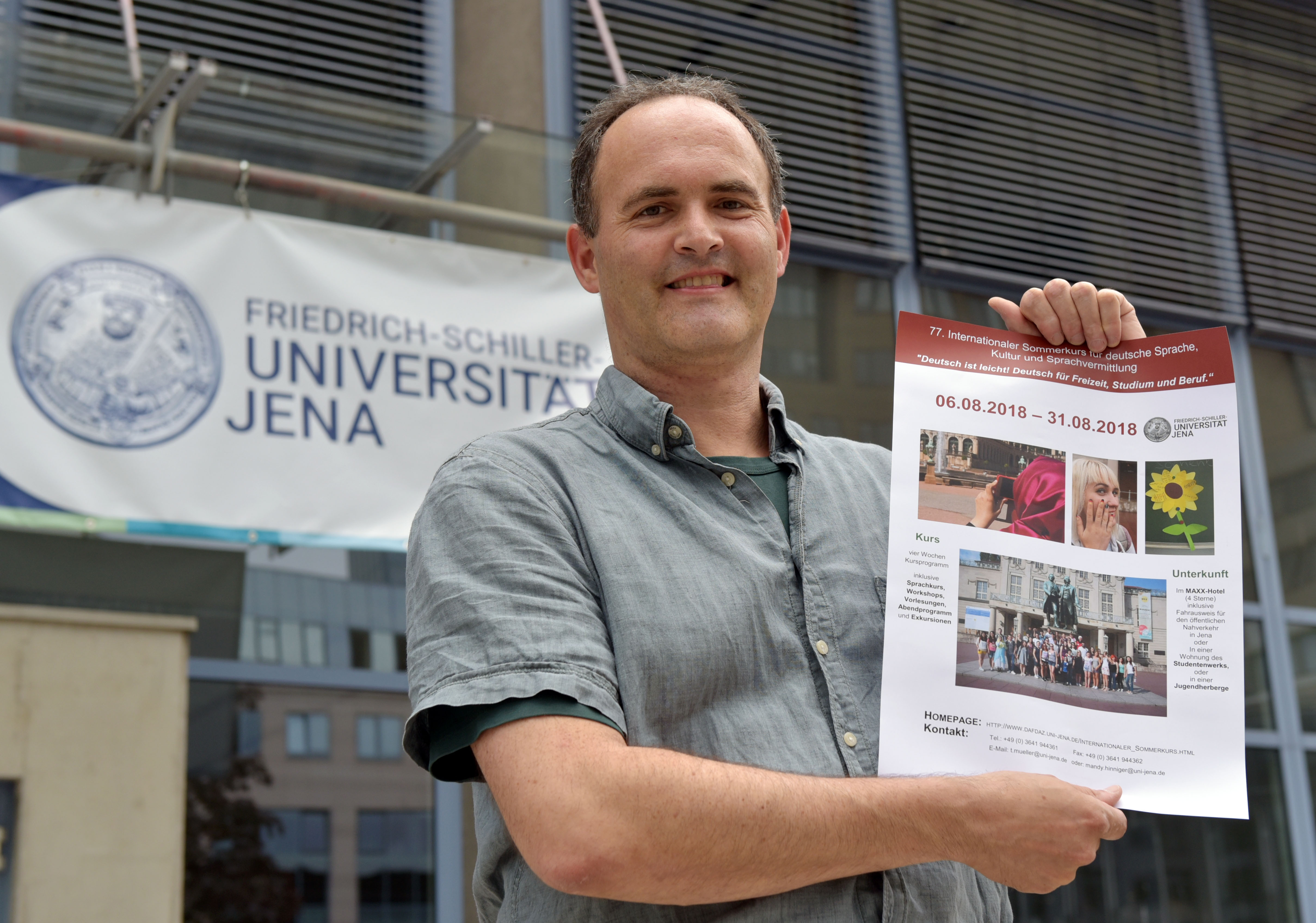 Es gibt viele gute Gründe, Jena zu besuchen. Fragt man die Teilnehmer vergangener Internationaler Sommerkurse für deutsche Sprache, Kultur und Sprachvermittlung, warum sie ausgerechnet in Jena ihre Sprachkenntnisse verbessern wollen, dann kristallisieren sich besonders drei Anreize heraus: Sie sind besonders neugierig auf die Wissenschaftsstadt, auf Jena als historisches Zentrum und auf Ostdeutschland. Das ist sicher auch bei den Teilnehmerinnen und Teilnehmern des diesjährigen 77. Sommerkurses so, der vom 5. August bis 1. September an der Friedrich-Schiller-Universität stattfindet.