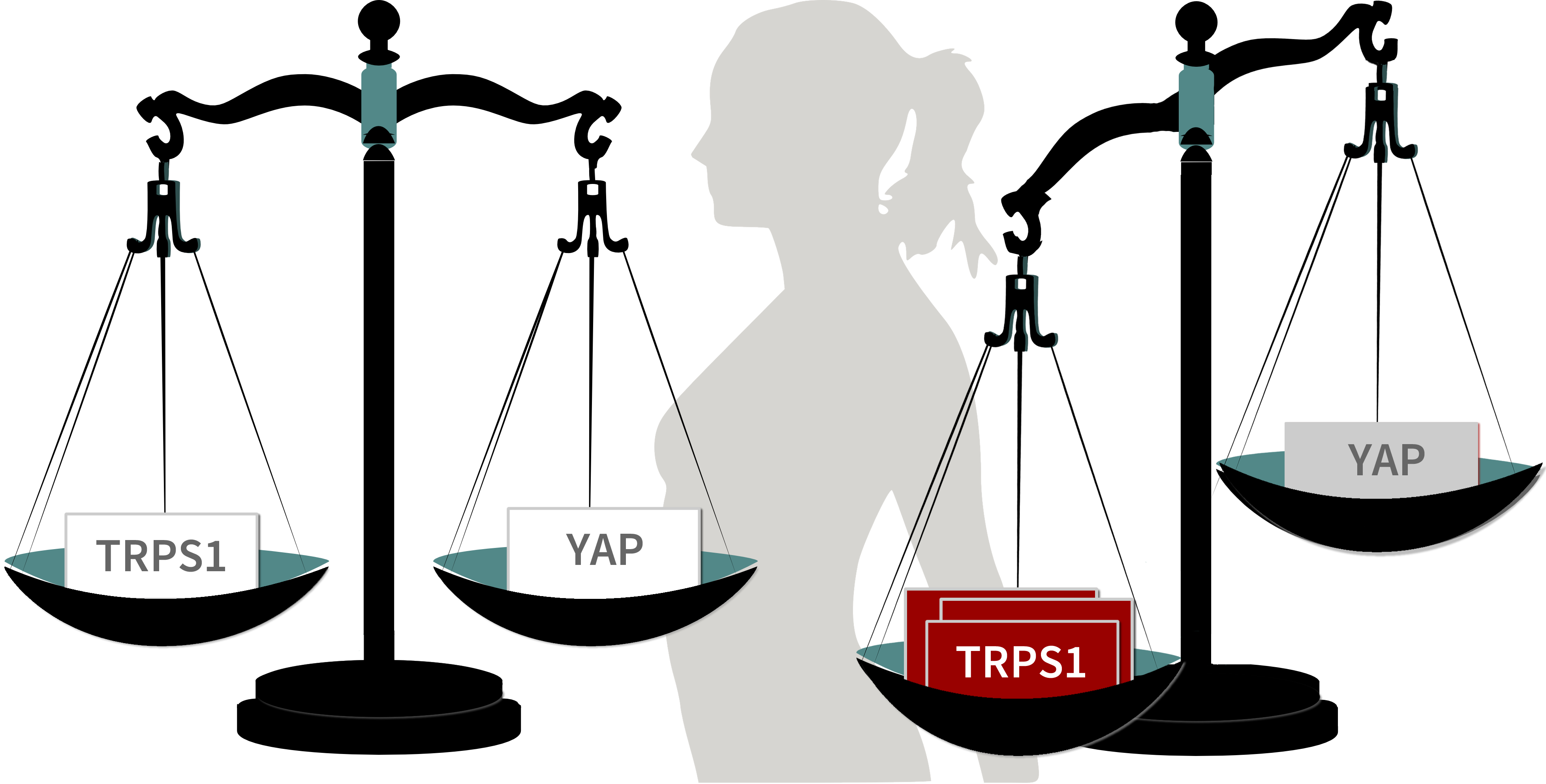 Many signal pathways are important regulators of YAP activity, sometimes even independently of the Hippo pathway. “This is why we conducted a genome-wide CRISPR screening, to identify new regulators of YAP in an unbiased fashion”, says Dana Elster, PhD student in the von Eyss Lab. With this method, the researchers were able to identify the protein TRPS1 (Trichorhinophalangeal Syndrome 1). For YAP-dependent transcription it acts as repressor, inhibiting the expression of many YAP target genes in breast cancer cells. “TRPS1 occupies a large number of genomic sites that are actually regulated by the YAP protein and impedes the transcriptional program”, explains Dr. Björn von Eyss. This suppresses YAP-dependent functions such as the transcription of YAP target genes.