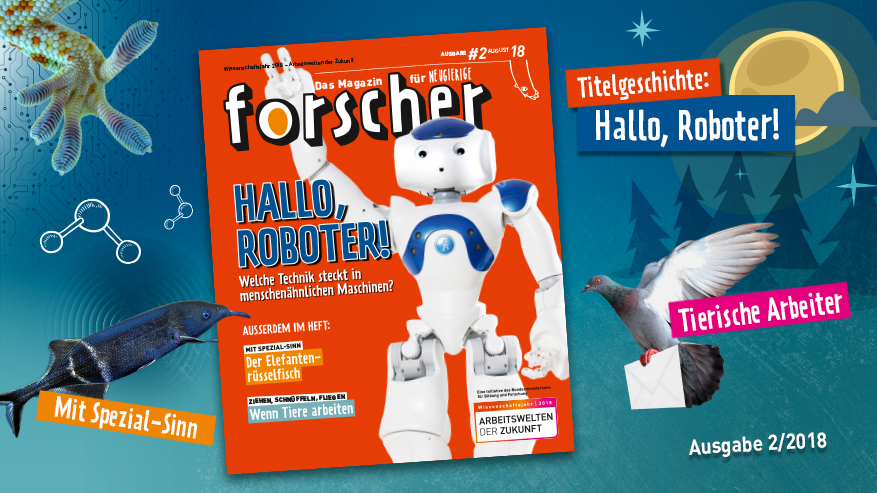 Berlin, 7. August 2018 – Es sind knifflige Fragen, die im neuen „forscher – Das Magazin für Neugierige“ unter die Lupe genommen werden. Mit der aktuellen Ausgabe der Kinder- und Jugendzeitschrift, die sich an junge Leserinnen und Leser zwischen acht und zwölf Jahren richtet, können diese jedoch im Handumdrehen beantwortet werden. Passend zum Wissenschaftsjahr 2018 dreht sich auch in dieser Ausgabe fast alles um die Arbeitswelten der Zukunft.