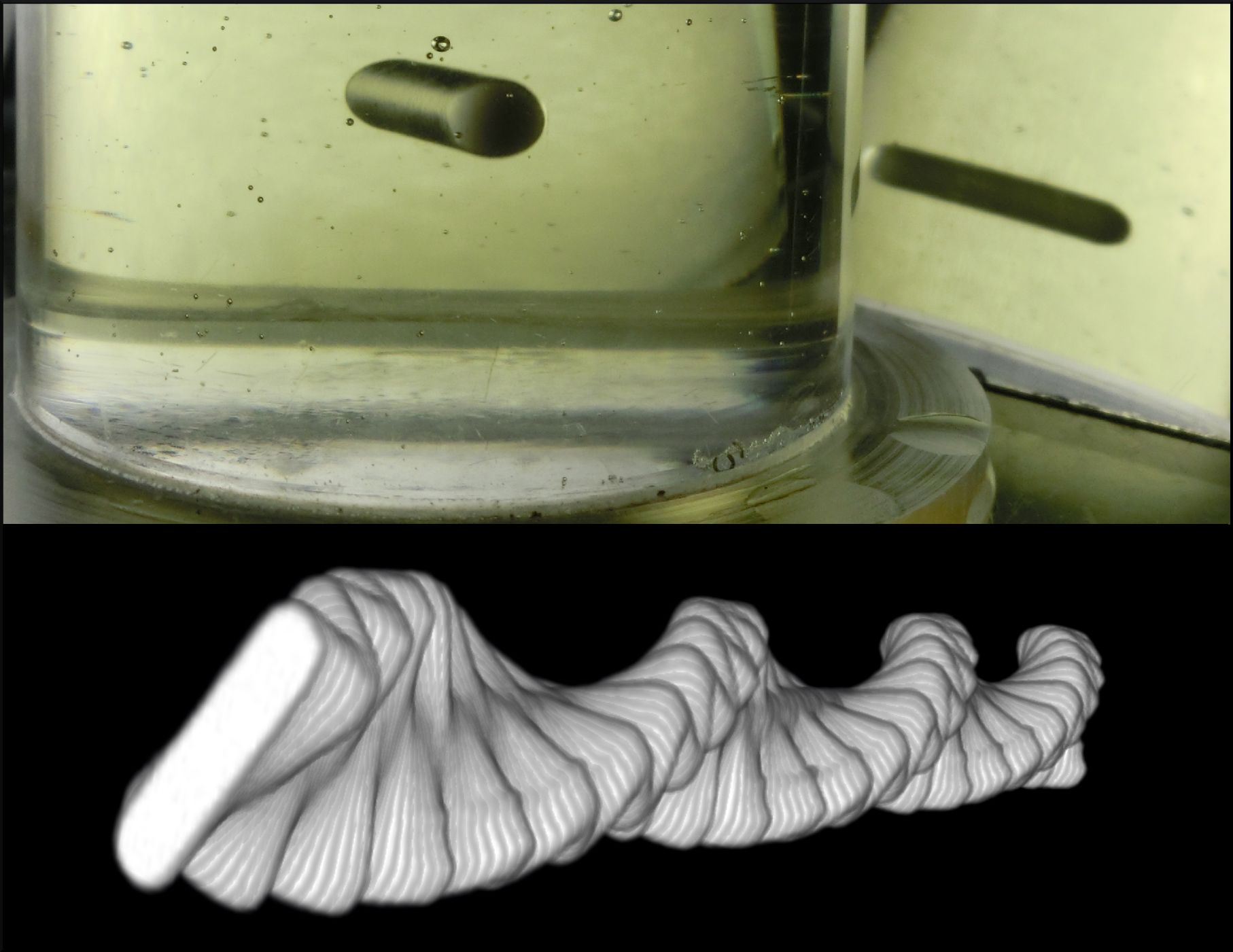 Die neue Methode verwendet ein einfaches Werkzeug, das in den meisten Labors weltweit bereits vorhanden ist: Einen Magnetrührer. Dies ist ein Gerät, das mit Hilfe rotierender Magnetfelder einen in eine Flüssigkeit eingetauchten Rührstab sehr schnell zum Drehen bringt und der dabei die Flüssigkeit im Behälter vermischt. Seit seiner Erfindung im Jahre 1942 ist bekannt, dass der Rührstabmagnet, wenn er zu schnell angetrieben wird, unberechenbar wie eine Forelle im Bach auf dem Boden des Behälters springt - daher der Spitzname „Rührfisch“. MPIDS-Wissenschaftler stellten fest, dass der Fisch in einem Behälter, der mit Flüssigkeit mit einer Viskosität ähnlich wie Honig gefüllt ist, nicht mehr herumspringt, sondern in der Flüssigkeit aufsteigt und schwebt. „Wir sind beim Mischen hochviskoser Polymerlösungen auf dieses Phänomen gestoßen und waren fasziniert“, erinnert sich Dr. Kyle Baldwin, der Erstautor der Arbeit. Er hat die Bewegung des schwebenden Rührfischchens in einer großen Experimentreihe sorgfältig analysiert und festgestellt, dass seine Bewegungen systematisch sind. Der Rührstab wackelt hin und her, pumpt Flüssigkeit zur Seite und stabilisiert so seine Position. Interessanterweise wird die Flüssigkeit in die entgegengesetzte Richtung gepumpt, wenn die Viskosität reduziert wird, und der Fisch sinkt.