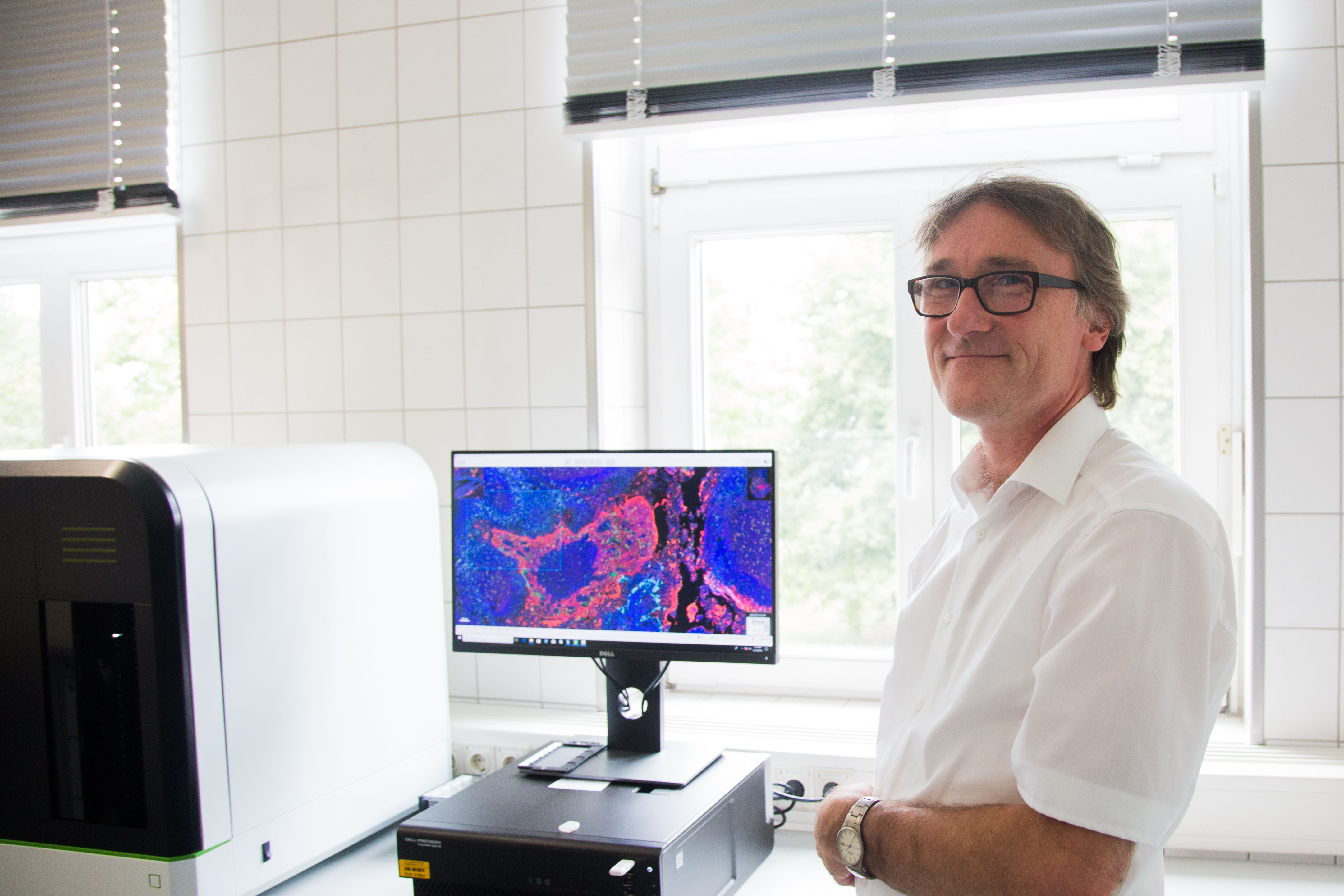 Prof. Dr. Dr. Johannes Haybäck, Direktor des Instituts für Pathologie, hob bei der Einweihung hervor: „Das neue Verfahren ermöglicht die Auswertung und Entwicklung von innovativen Biomarkern für die Diagnose- und Therapiestellung, insbesondere für die Immuntherapie. Das neue Verfahren ist damit wesentlich aussagekräftiger als Einzelfärbungen und ermöglicht den Forschern und Medizinern einen detaillierten Blick in den Tumor und sein Mikromilieu.“