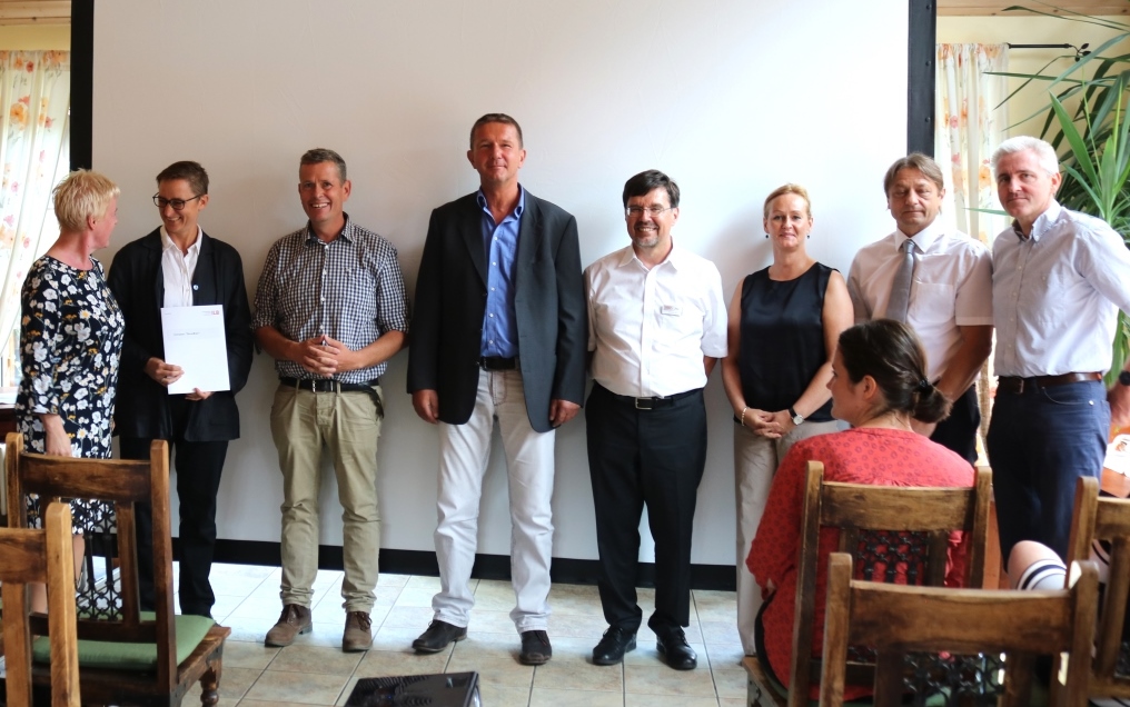 Ein autonom fahrender, mit Energie aus Photovoltaik gespeister Traktor soll künftig in Strauchbeerenanlagen gezielt die Pflege des Unterwuchses übernehmen und damit helfen, Ertrag und Fruchtqualität von Beerenobst zu verbessern. Das ist Ziel des EIP-Projekts „Emissionsfreie Strauchbeeren-Produktion (SunBot)“. Brandenburgs Agrarstaatssekretärin Dr. Carolin Schilde überreichte heute in Petzow den Förderbescheid in Höhe von 1,6 Mio. Euro an die Projektgruppe aus Wissenschaft, Industrie und Praxis.