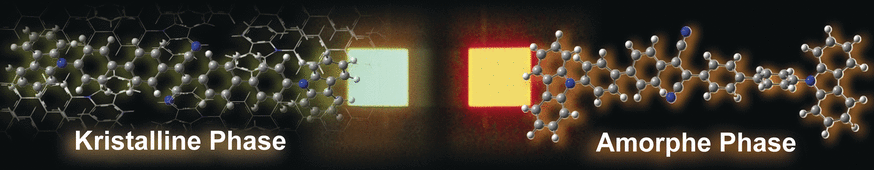 Dieser Befund wurde durch Röntgenkristallographie und Berechnungen theoretisch untermauert. Demnach nimmt der angeregte Zustand im nichtkristallinen, amorphen Festkörper eine etwas entspanntere Architektur als im Kristall ein: Die Winkel in der in sich verdrehten Farbstoffstruktur unterscheiden sich leicht. Entsprechend sendet der amorphe Festkörper Licht etwas längerer Wellenlänge aus als der Kristall.