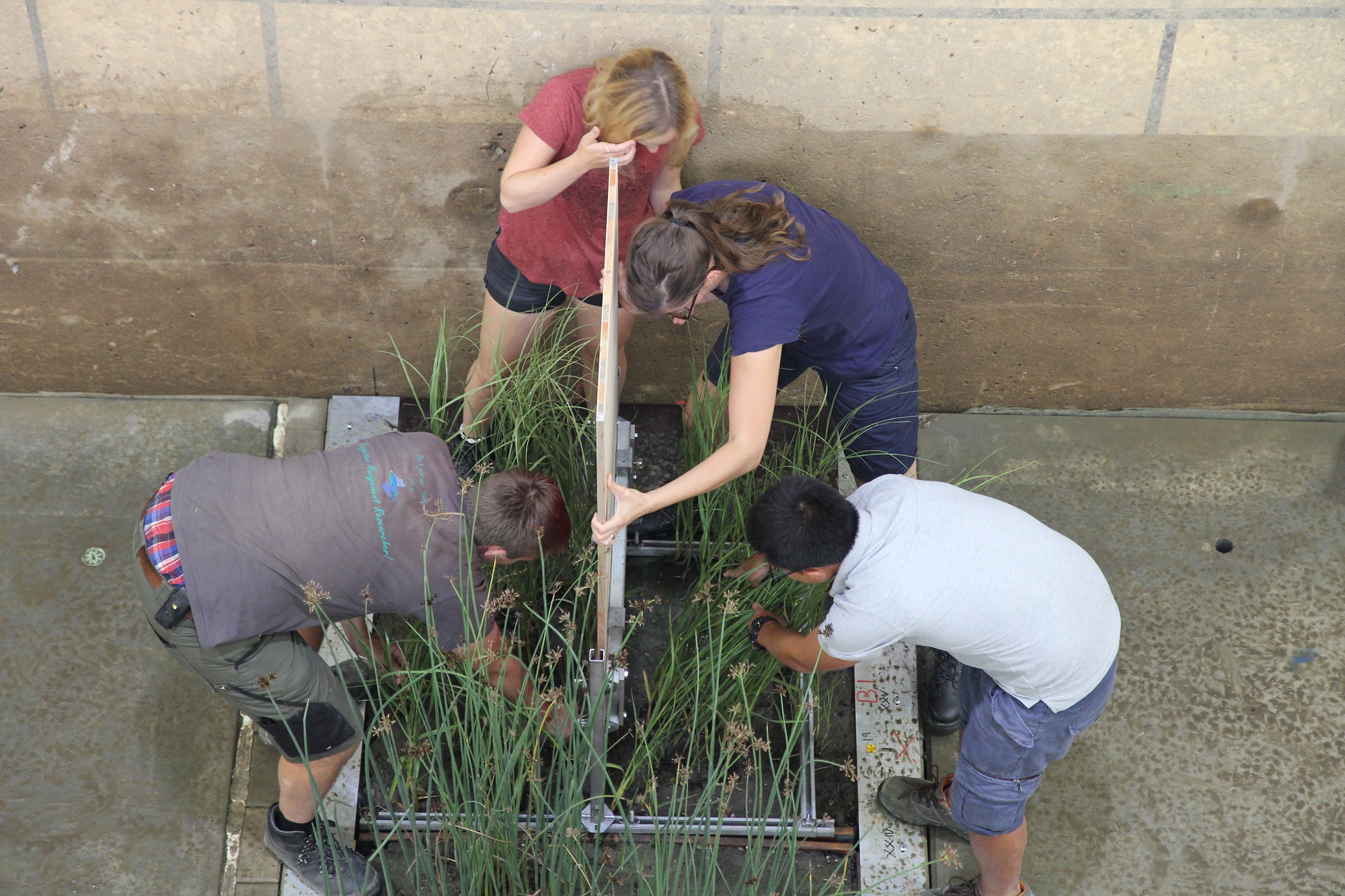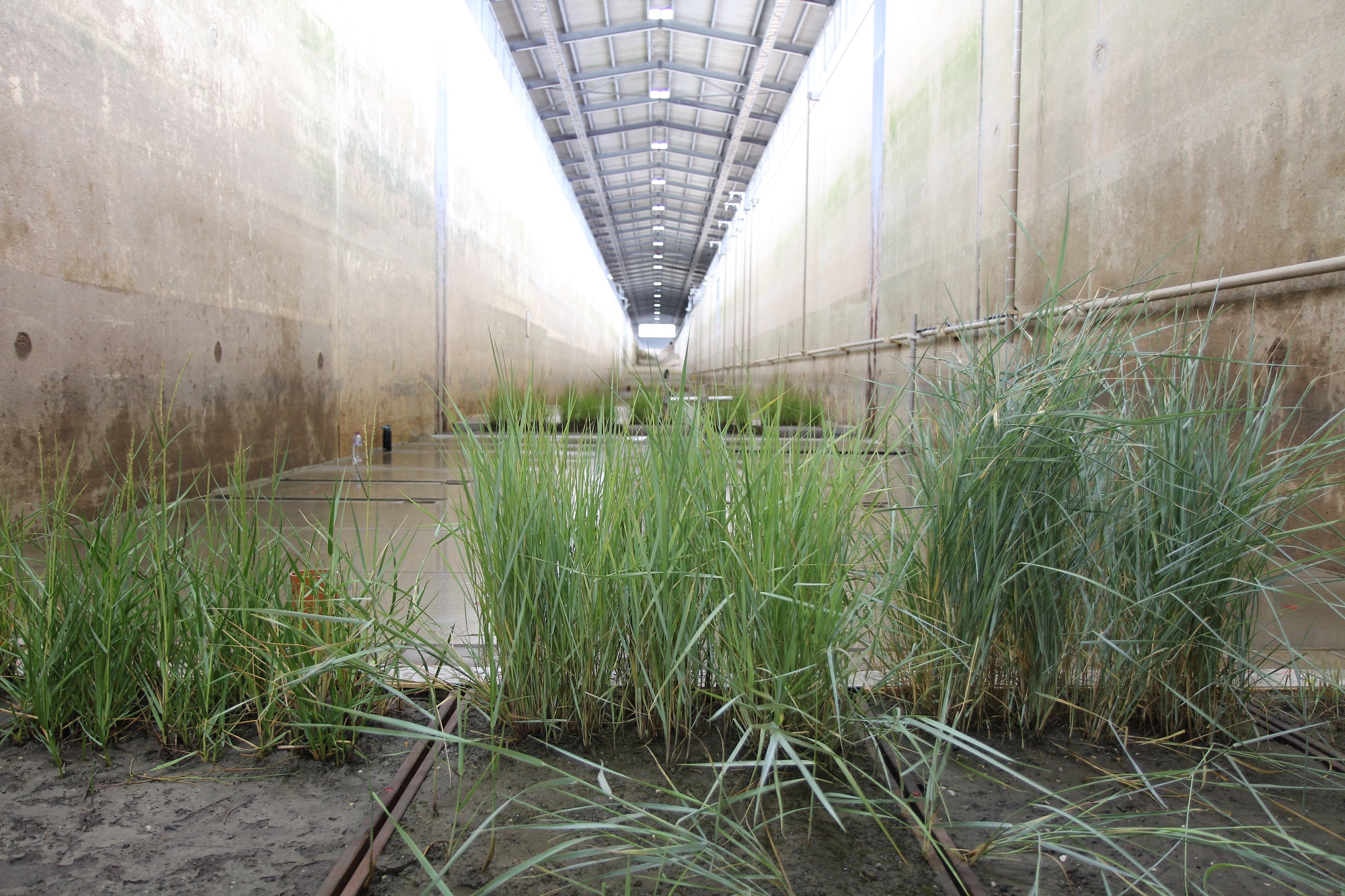 In March 2018, researchers collected plants such as cordgrass and sea club-rush in the Netherlands. Subsequently, they planted them in wooden boxes, which were then positioned in five different soil zones of the Large Wave Flume. For instance, in one zone the team will study the effects of storm surges in summer and winter. For this, some plants were drained in order to simulate dieback due to drought. Researchers will use another zone to test new erosion control equipment made from potato starch. The mesh is fixed to the ground inside the boxes and should protect both seedlings and sediment against waves.