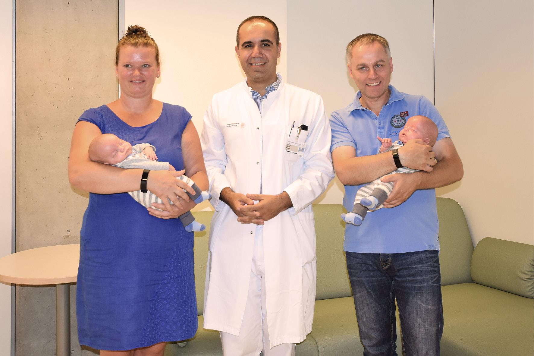 Operationen im Mutterleib sind immer dann eine Option, wenn die ungeborenen Kinder durch Probleme der Plazenta gefährdet sind. So wird eine OP bei eineiigen Zwillingen notwendig, wenn bei einem fetofetalen Transfusionssyndrom die Blutkreisläufe dieser Kinder über eine gemeinsame Plazenta miteinander verbunden sind und der eine Fet den anderen mit Blut versorgt. Das nennt man fetofetales Transfusionssyndrom. Der Fetalchirurg trennt die beiden Kreisläufe mittels Laser, damit beide Kinder gleichmäßig mit Blut versorgt werden. Geschieht das nicht, bekommt ein Kind zu viel und das andere zu wenig Blut. Unbehandelt bleibt den Zwillingen nur eine zehnprozentige Überlebenschance. Dank der Laser-OP im Mutterleib liegt die Überlebenschance bei etwa 90 Prozent. Nach der erfolgreich ausgeführten intrauterinen Lasertherapie in der 18. Schwangerschaftswoche am Uniklinikum sind Mitte Juni beide Kinder erfreulicherweise in der 32. Schwangerschaftswoche geboren worden. „Mutter und Kinder sind gesund“, sagt PD Dr. Cahit Birdir. „Wir sind froh und dankbar, dass uns das Team um Dr. Birdir helfen konnte und dass der Eingriff in Dresden möglich war“, sagt Kathleen Roll, die Mutter der Zwillinge. Oskar und Felix sind seit wenigen Wochen zu Hause und entwickeln sich prächtig. „Wir möchten auch anderen betroffenen Familien Mut machen, sich für diesen Eingriff zu entscheiden.“